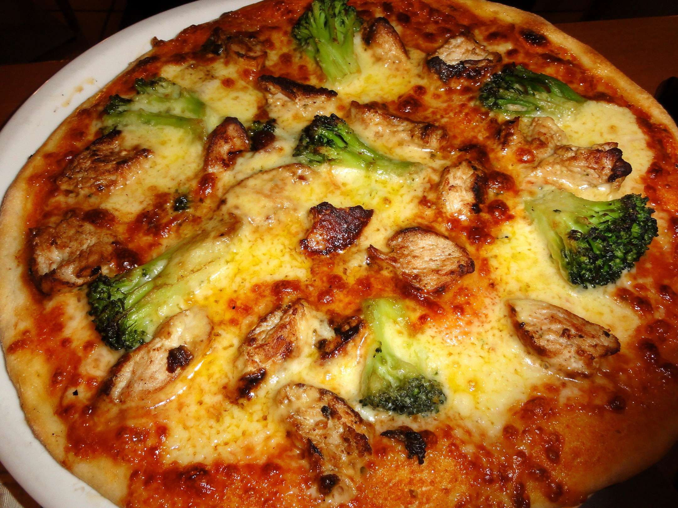 Pizza mit Hähnchenfleisch und Gemüse