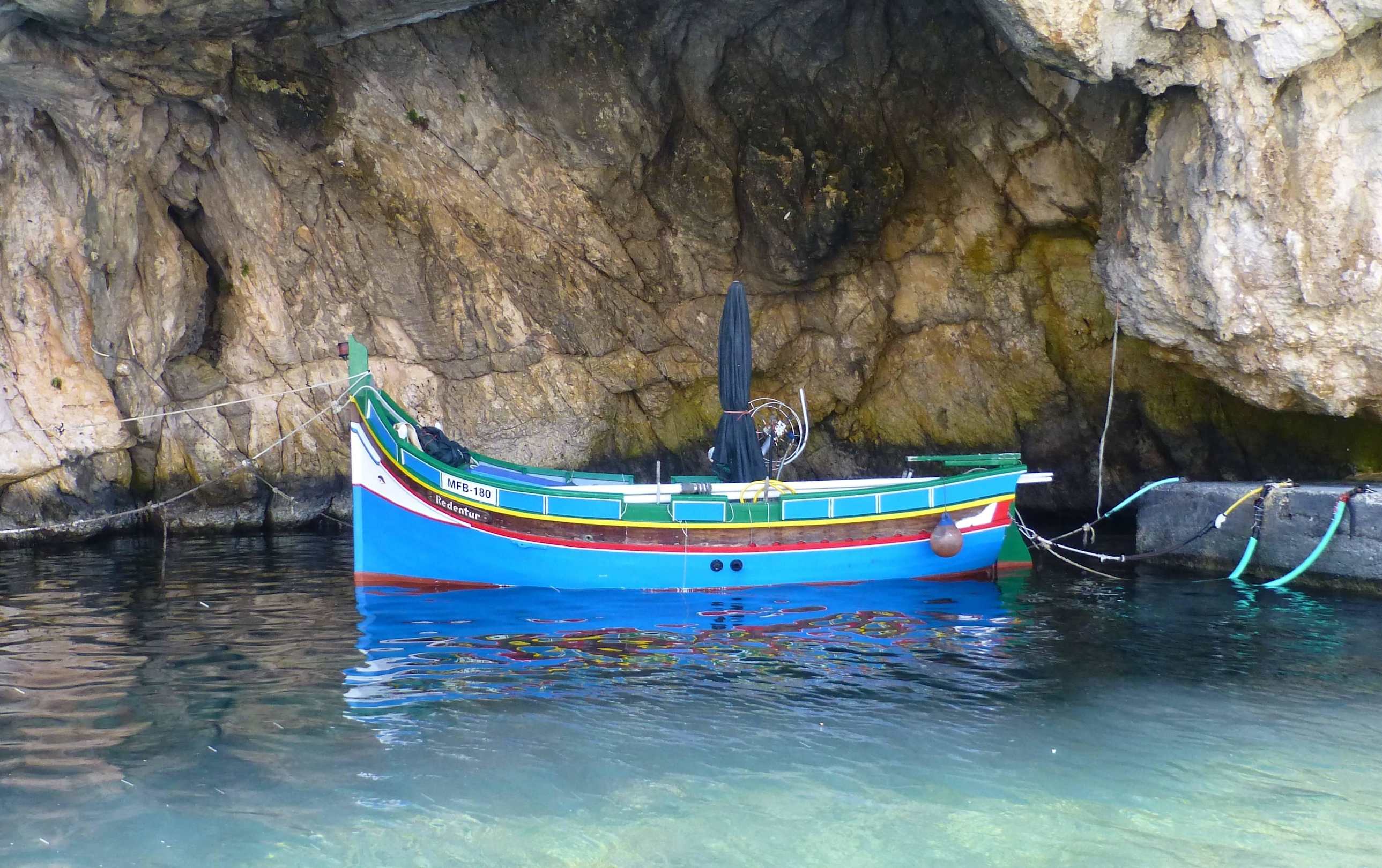 Luzzu in der Hafeneinfahrt von Xlendi