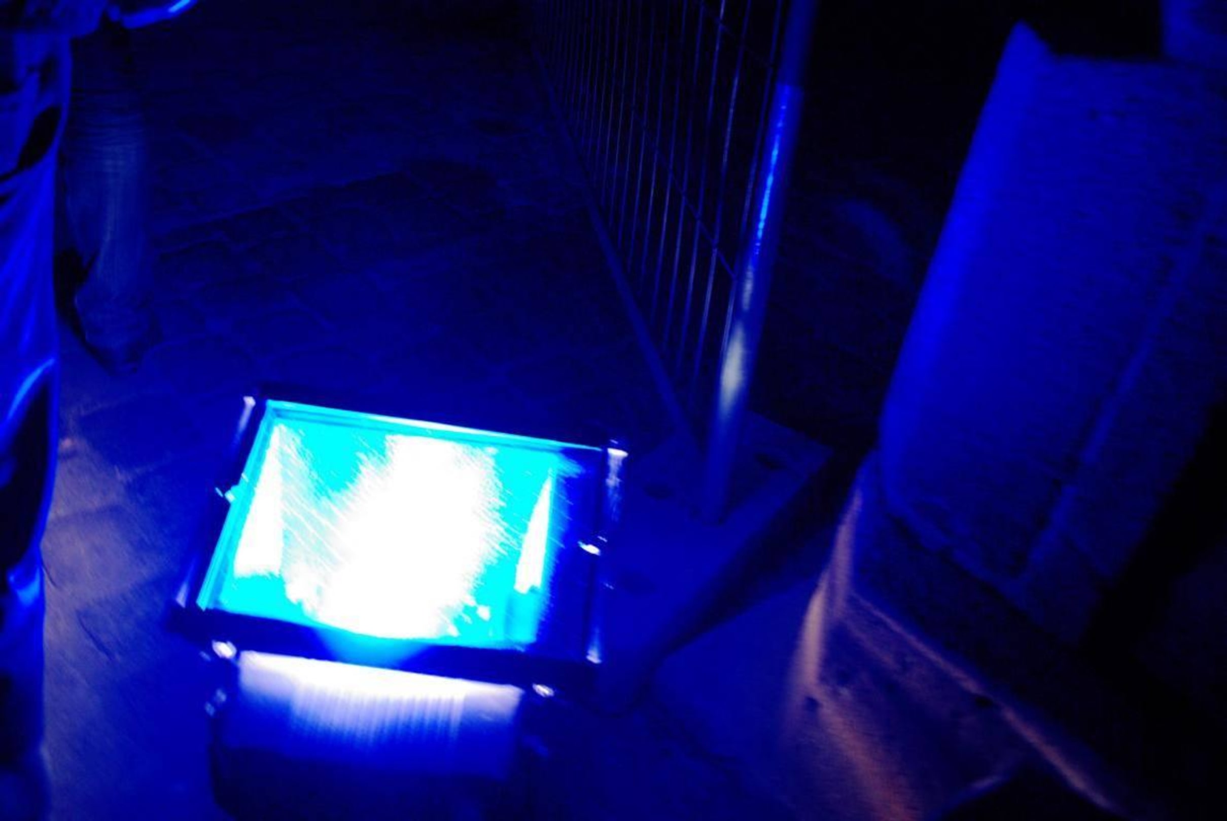 In der Sebald Kirche blaue Scheinwerfer