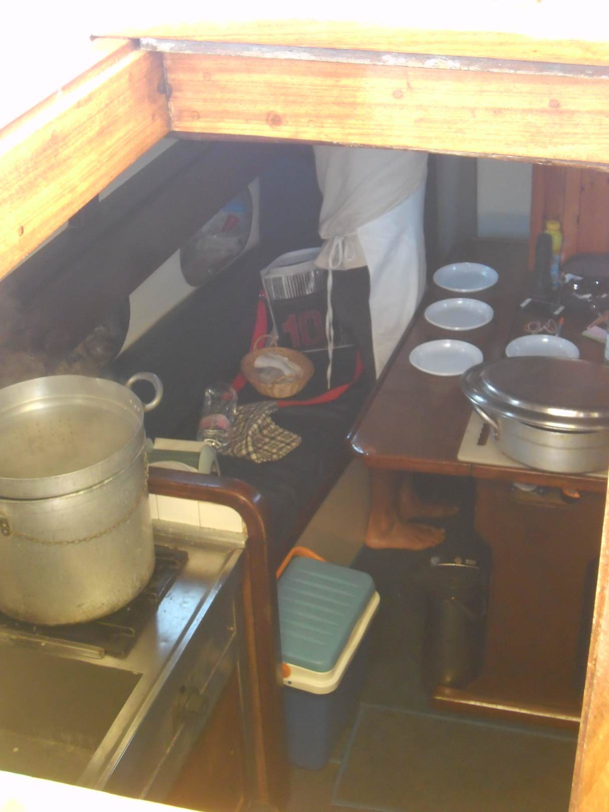 Spaghetti mit Meeresfrüchten in Kombüse zubereitet