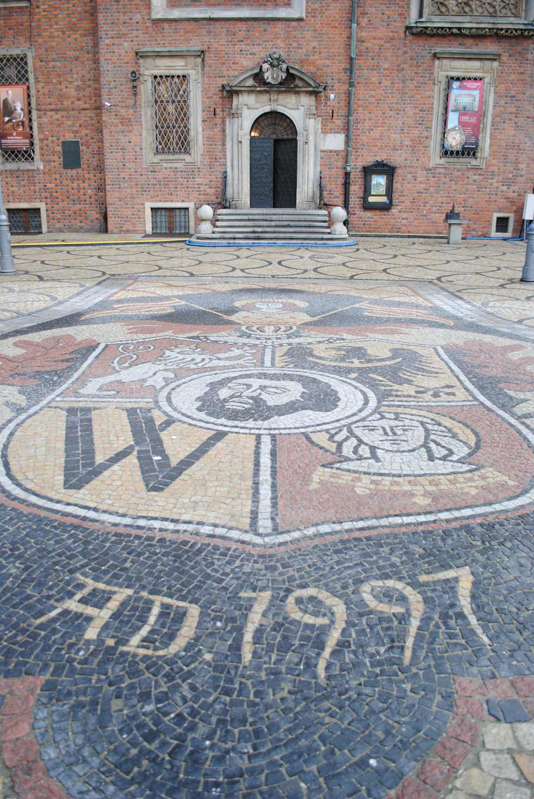 Herb Wrocławia ułożony z kostki granitowej
