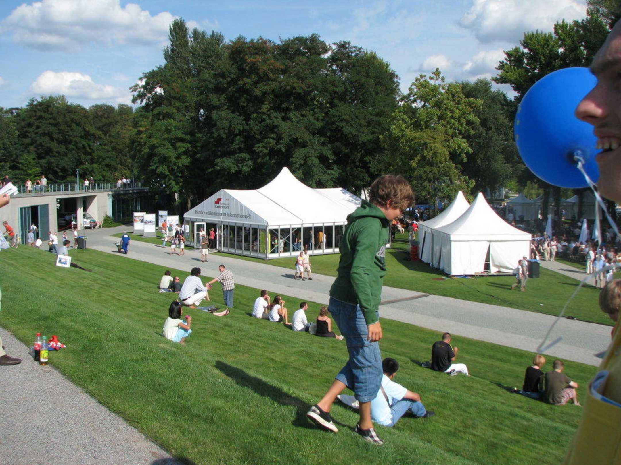 Info-zelt im hinteren Teil des Kanzlergartens