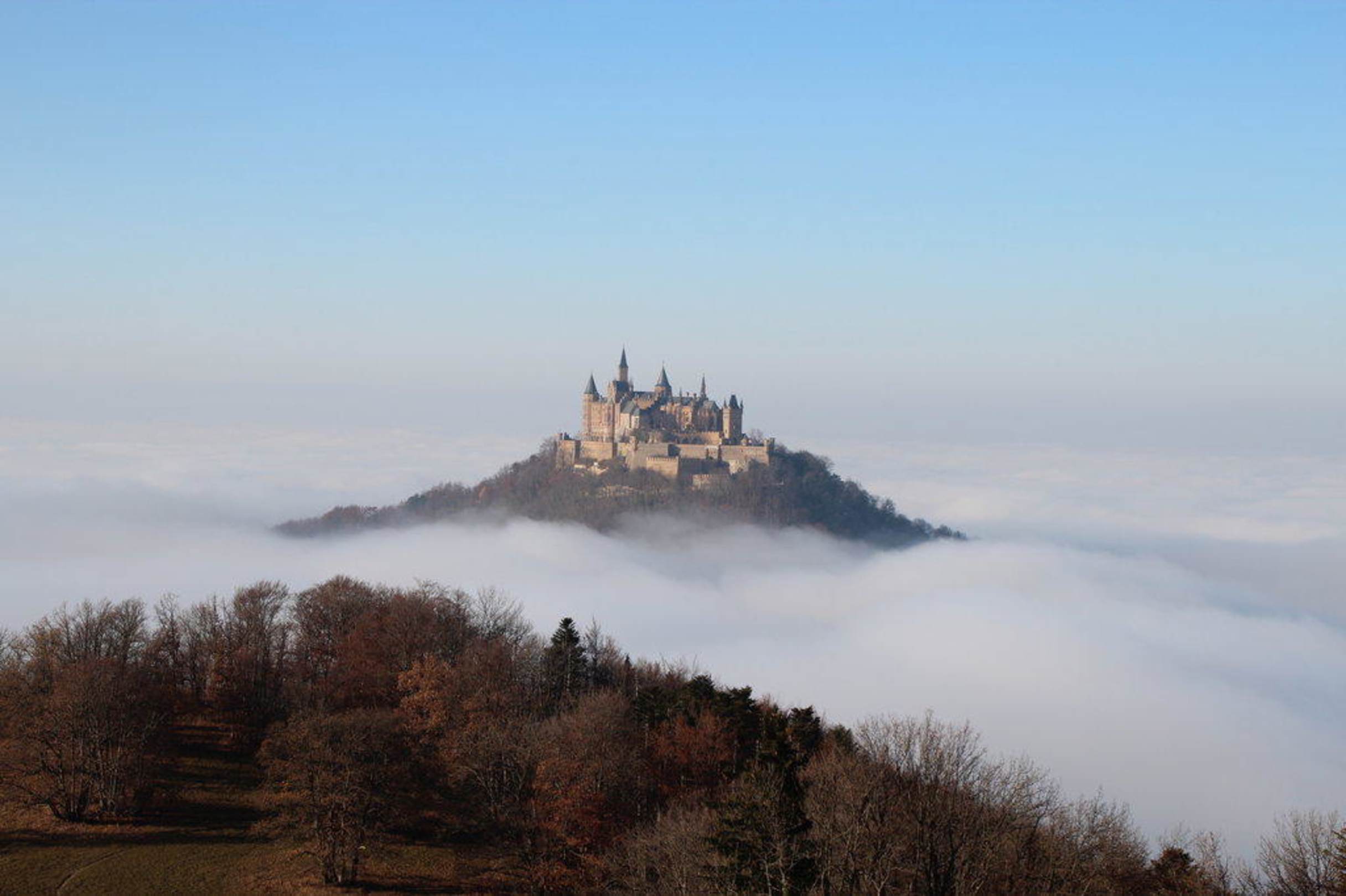 Burg Hohenzollern ragt aus dem Nebel