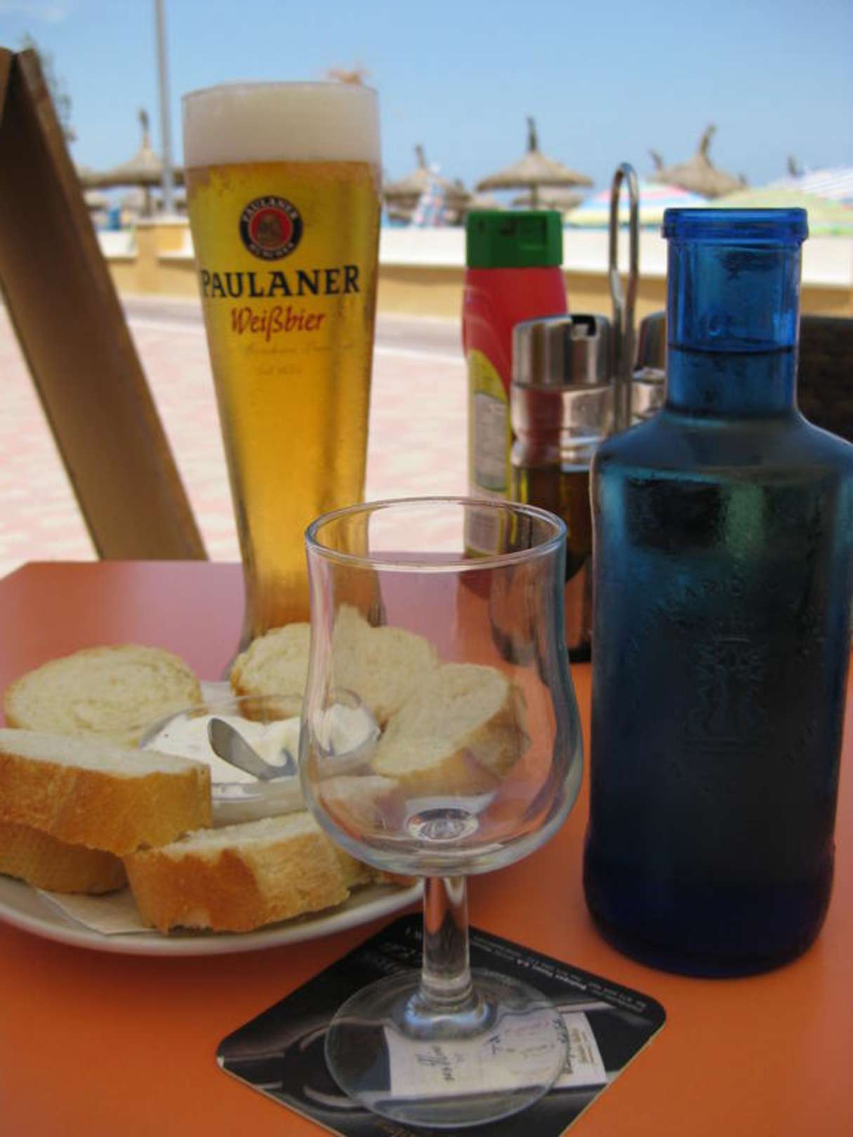 Blick auf's Meer mit Getränken