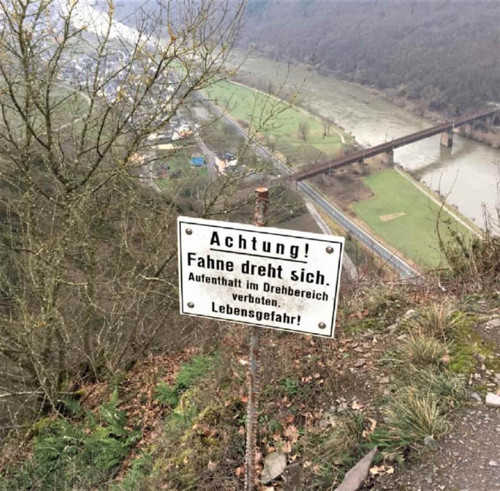 Warnschild bei der Fahne