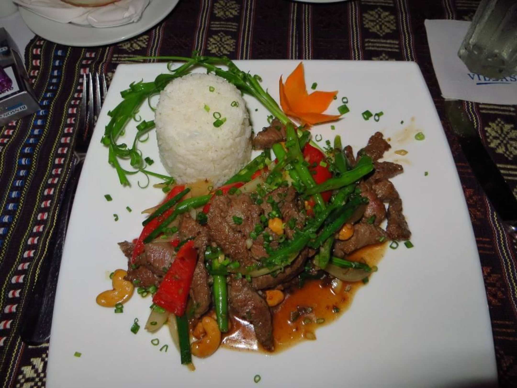 Gebratene Rindfleischstreifen m.Bohnen u.Erdnüssen