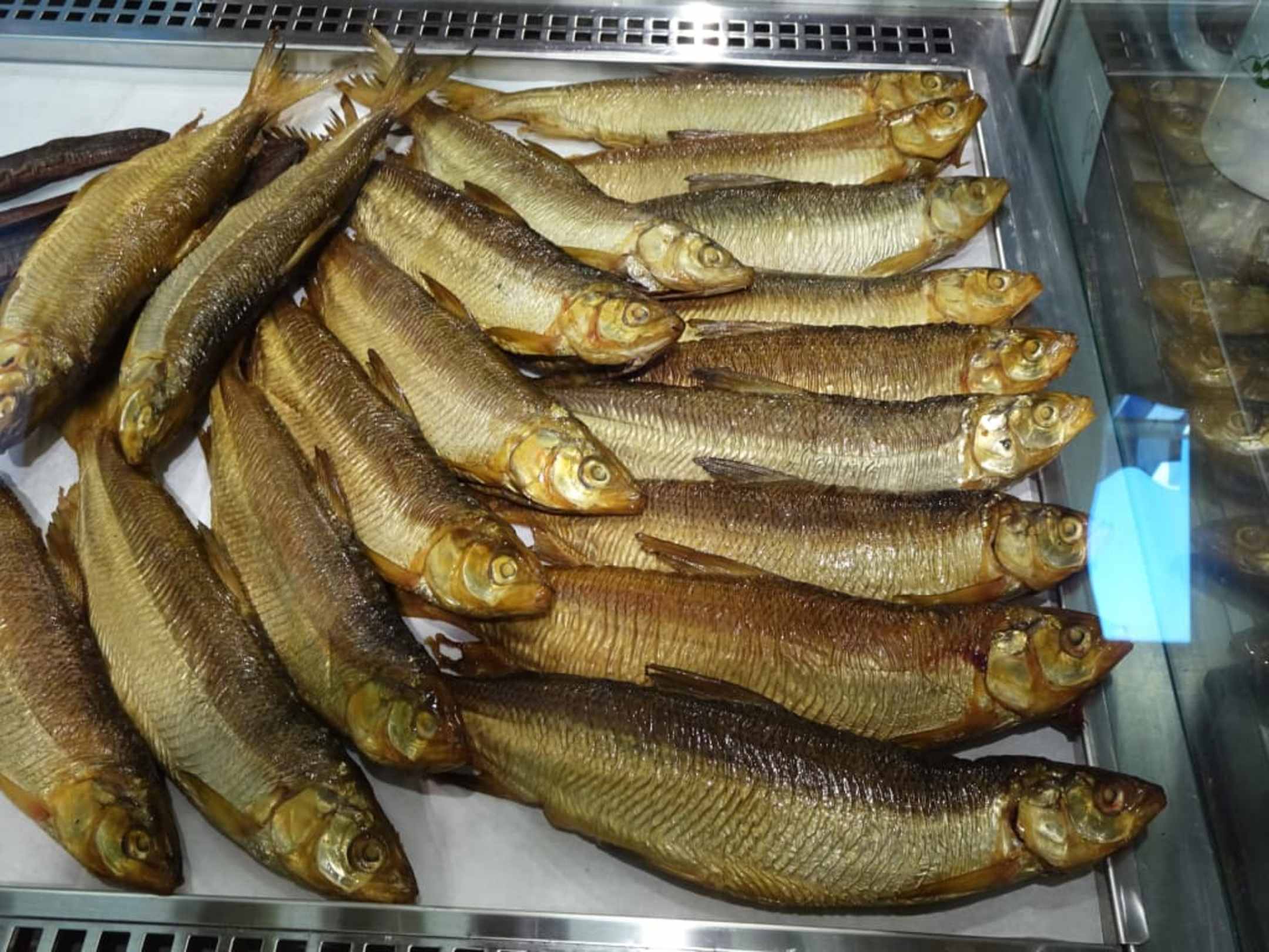 Auslagen mit frischem Räucherfisch bei Lex