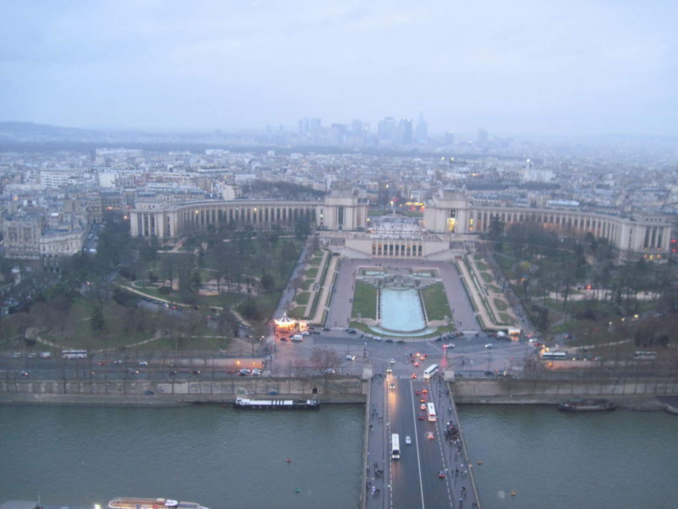 Blick vom Eiffelturm bei Dämmerung