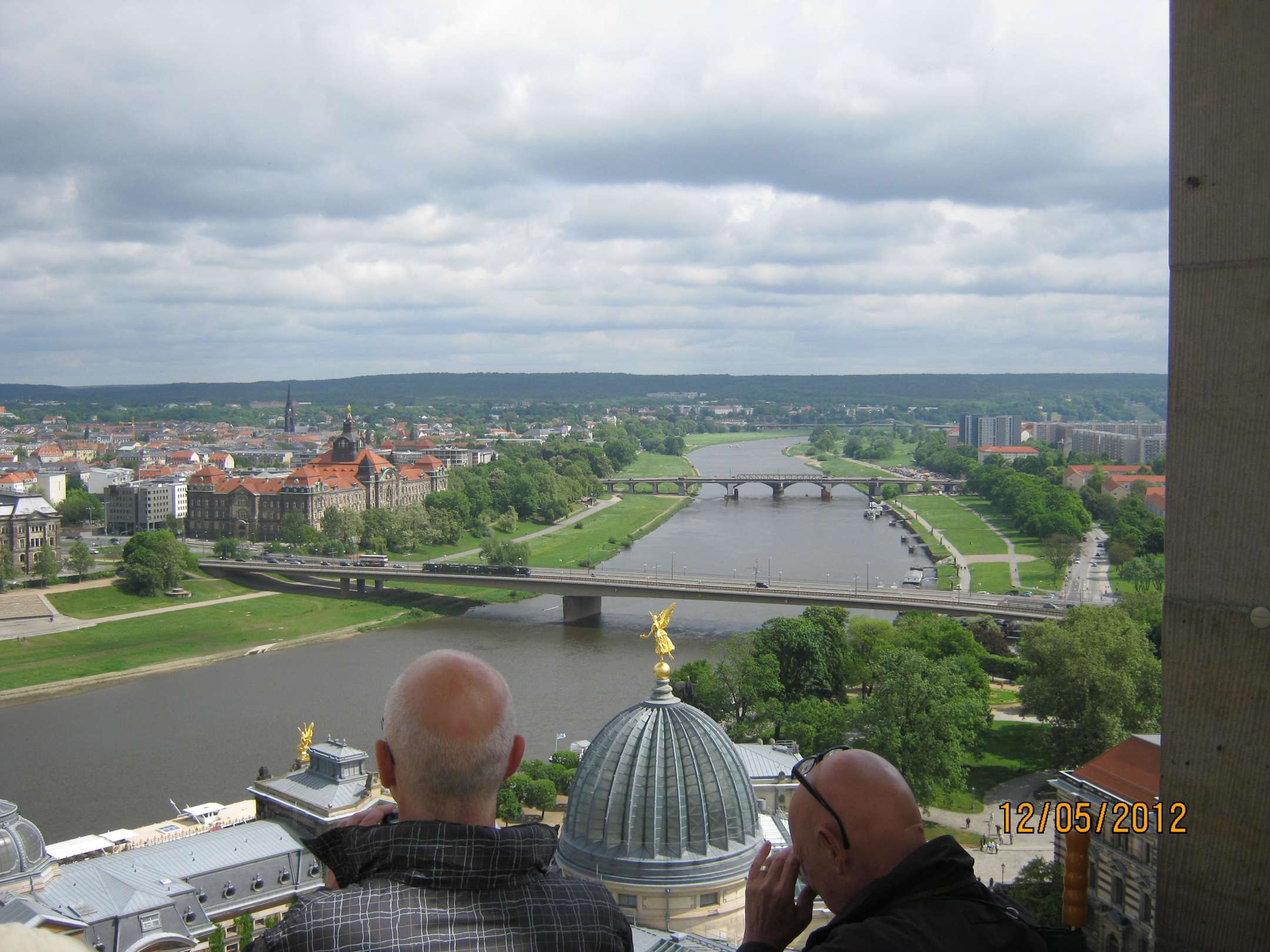 Blick von oben der Frauenkirche auf die Elbe