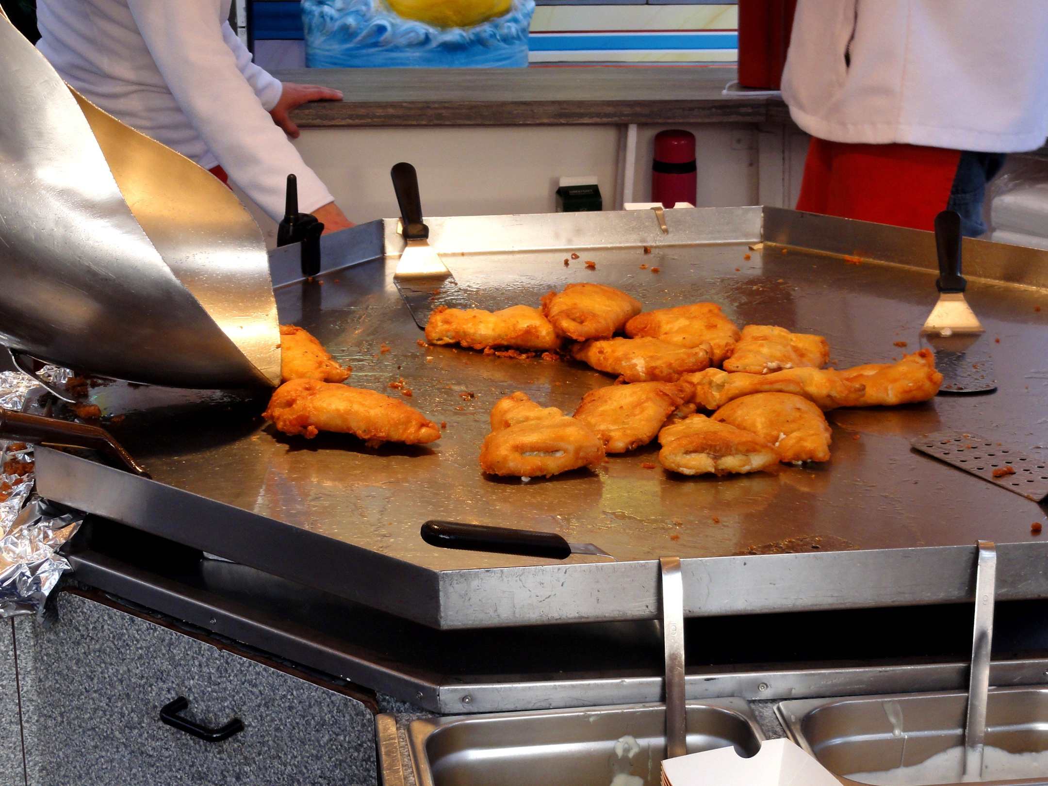 Frischer Backfisch am Fuße der Rutsche