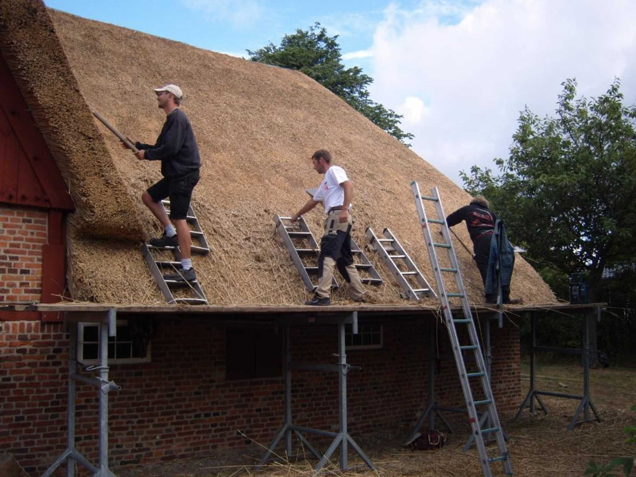 Die Reetdachdecker bei der Arbeit
