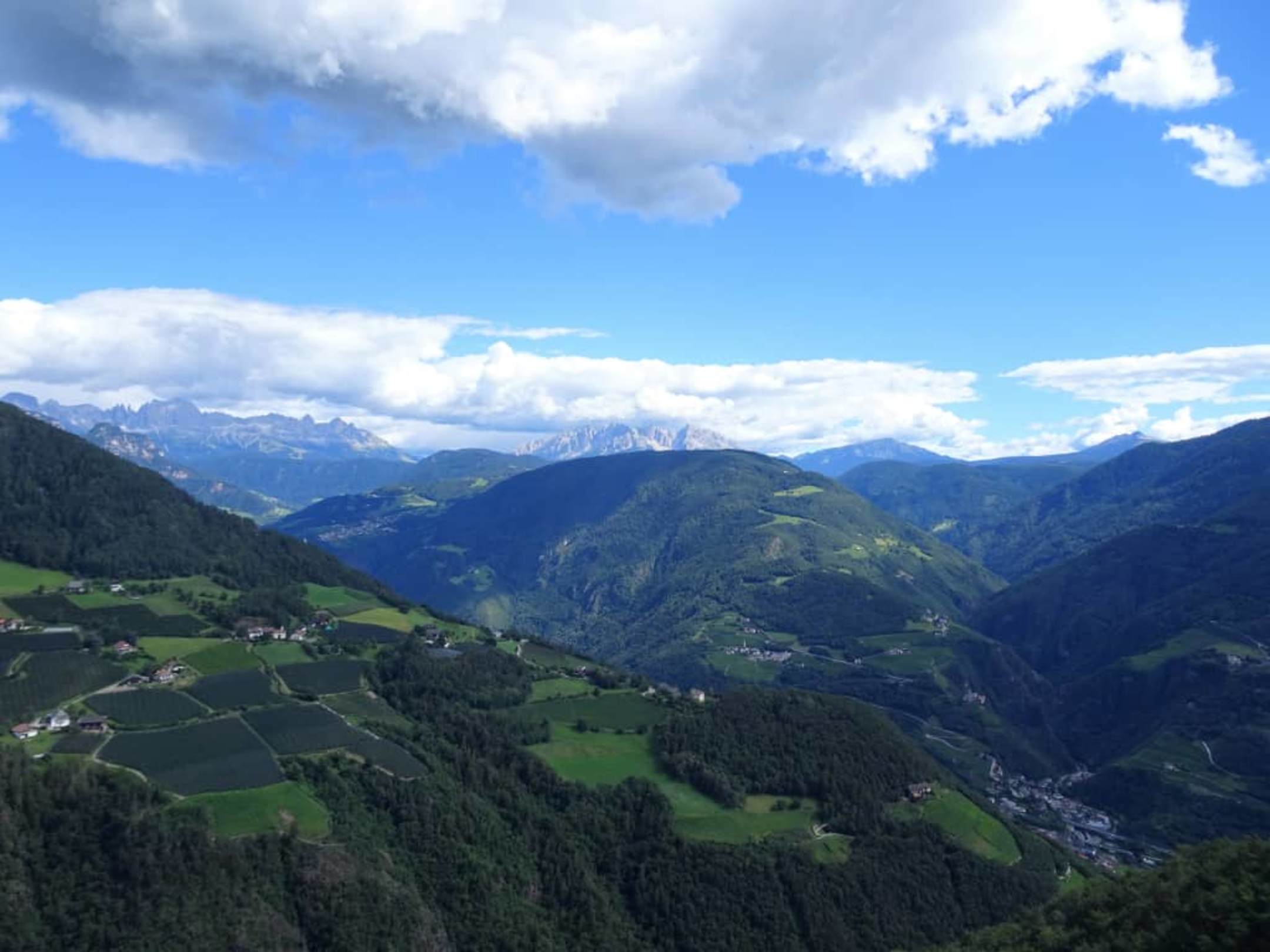 Blick aus der Gondel auf die Dolomiten
