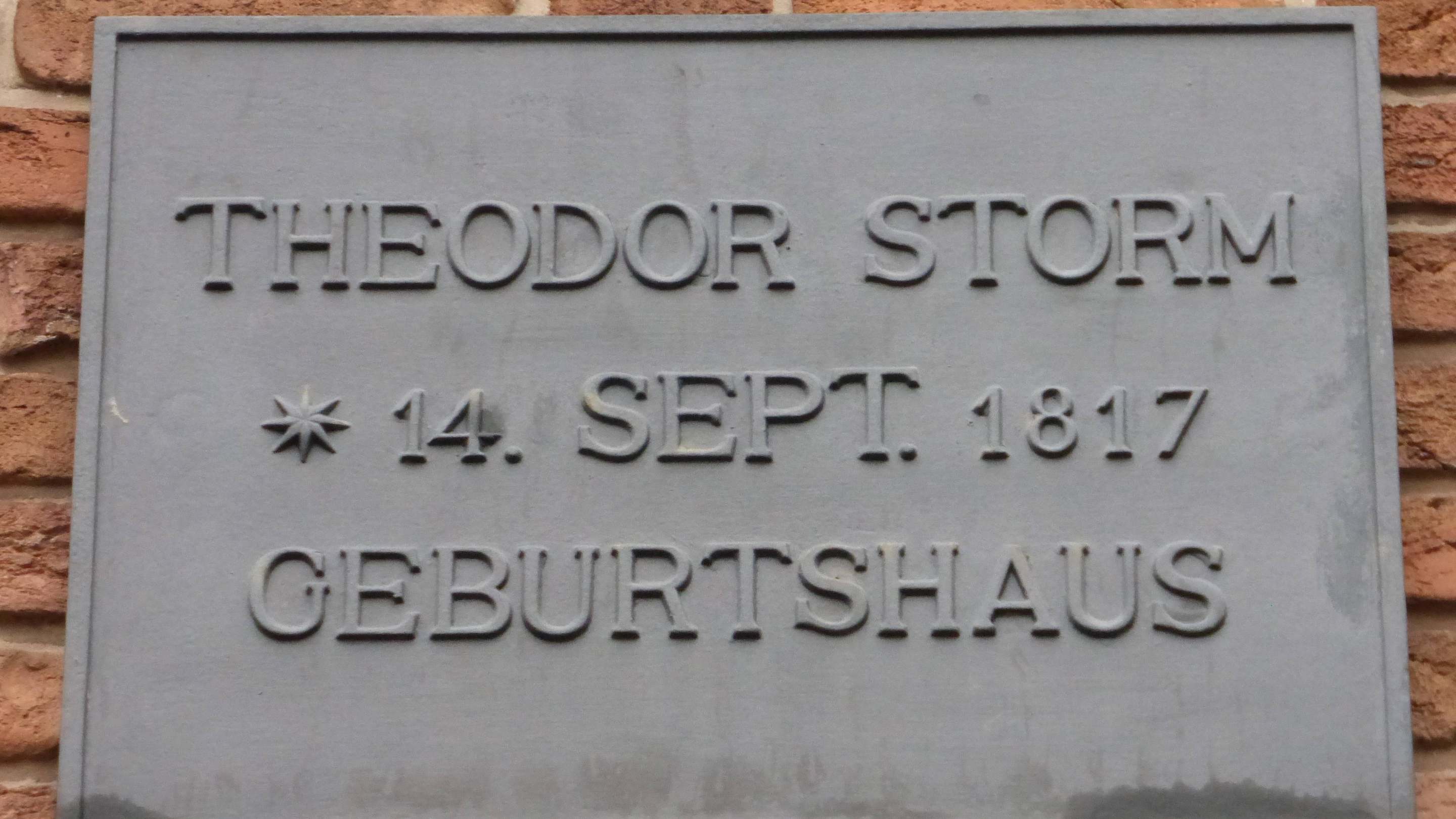 Erinnerungstafel am Geburtshaus von Theodor Storm