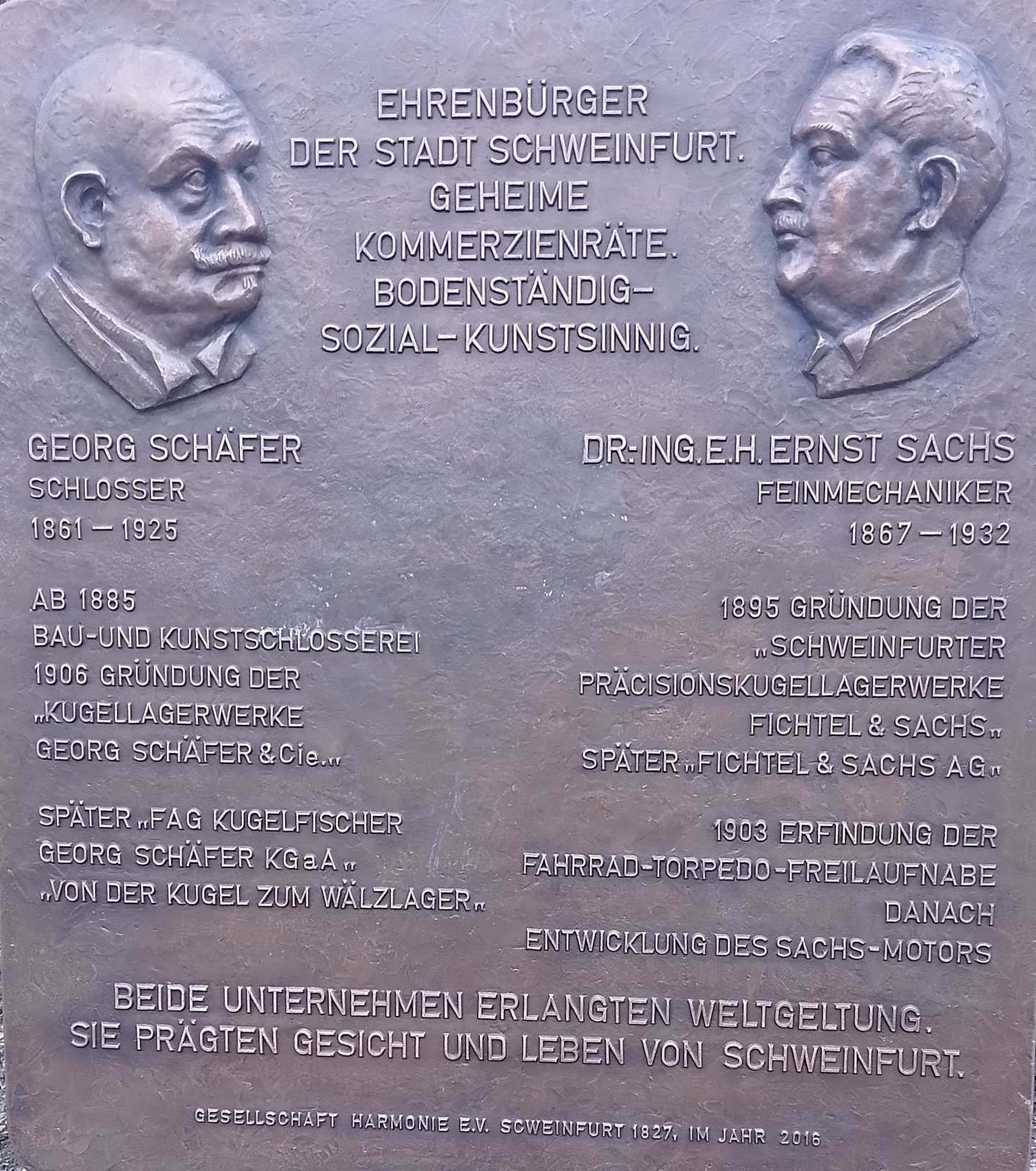 Gedenktafel für zwei Schweinfurter Ehrenbürger