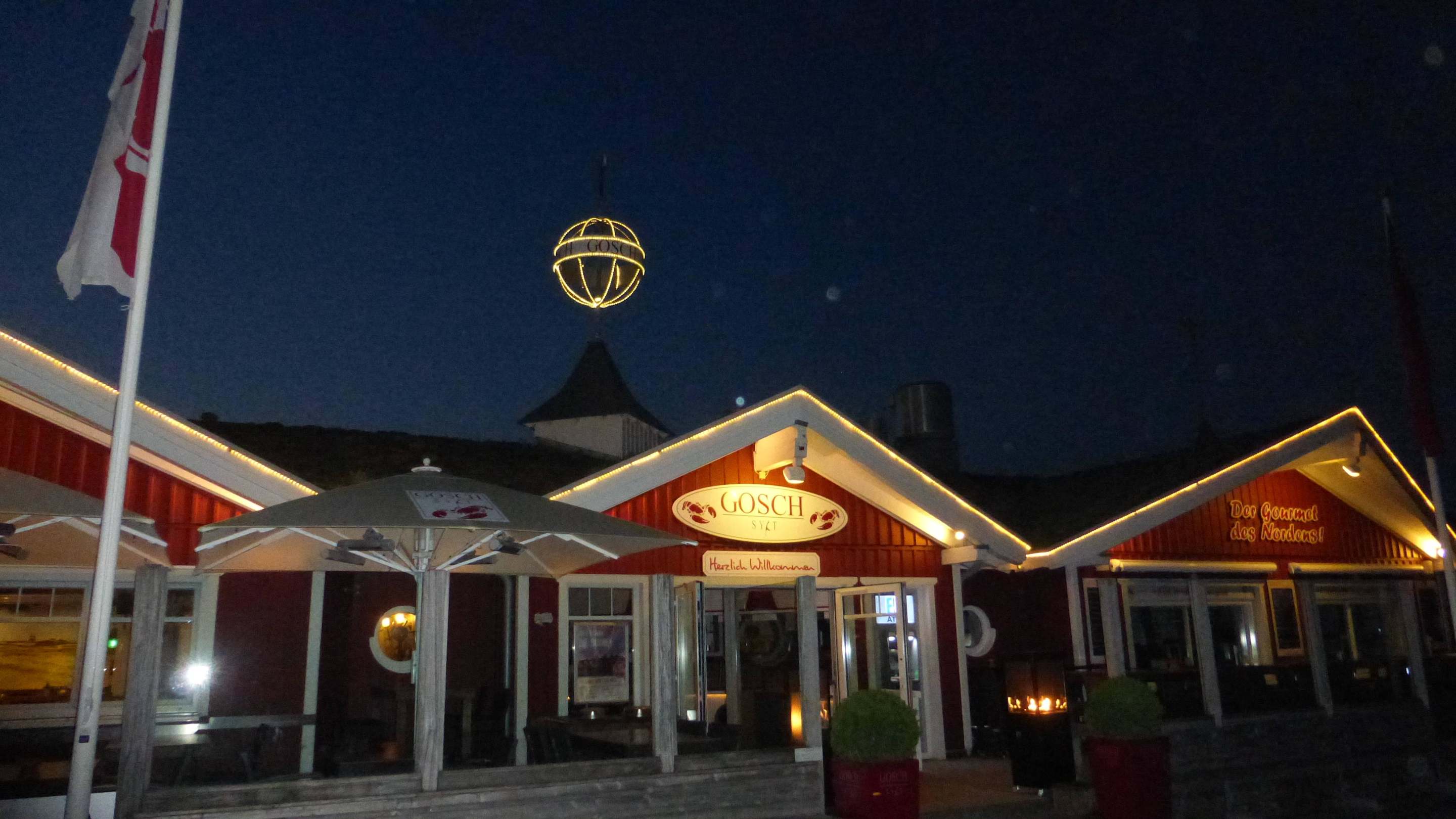 Blick auf Gosch in St. Peter Ording bei Nacht