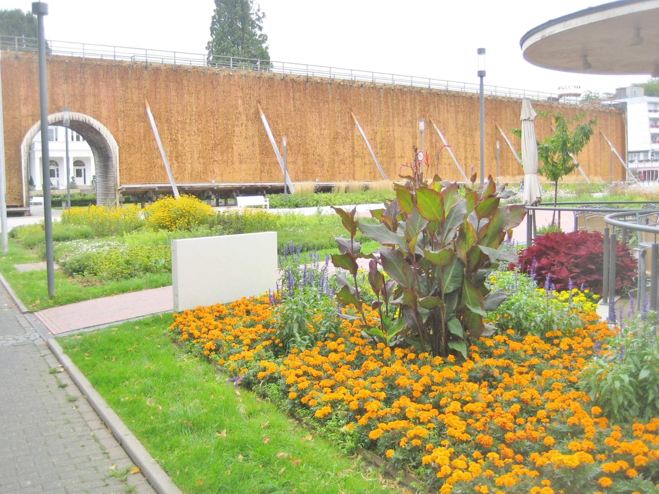 Blick aufs Gradierwerk ab dem Salinen Café