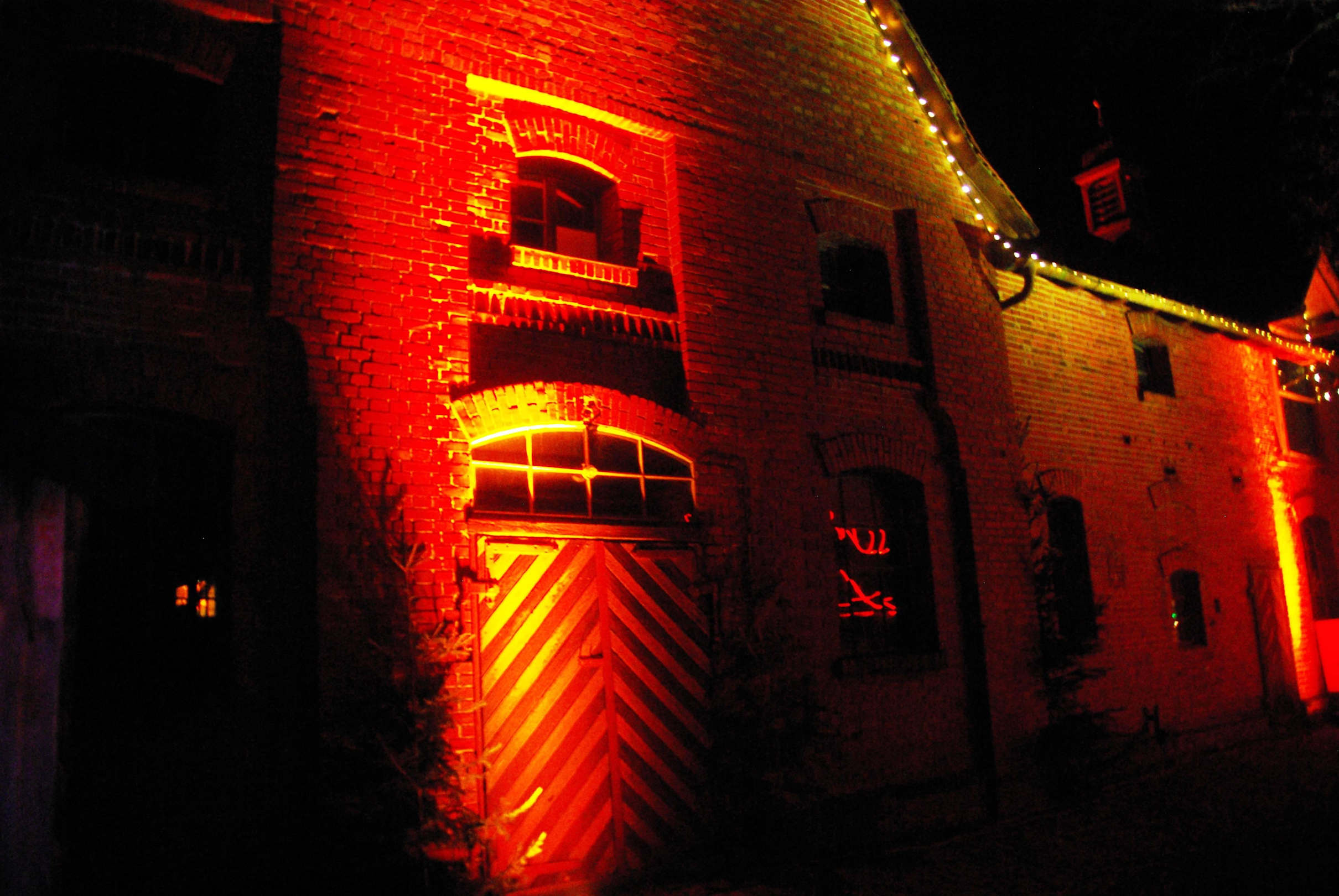 Stallung mit Strahler angeleuchtet