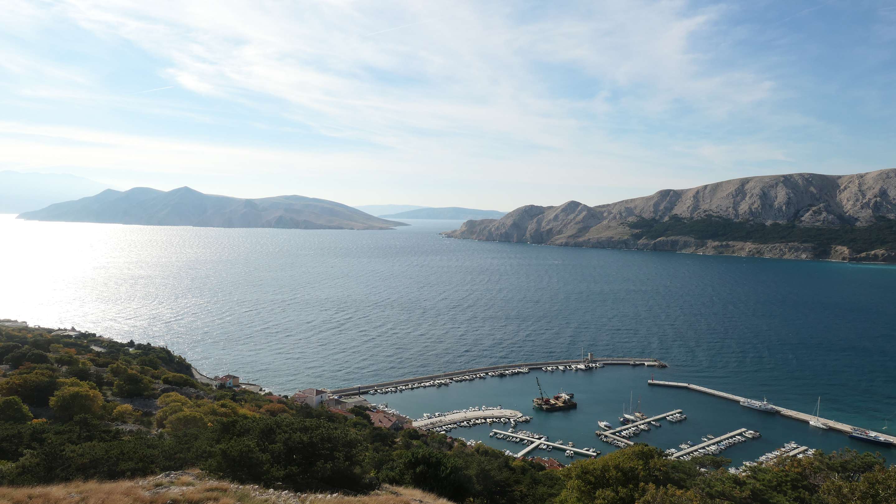 Blick von oben auf den Hafen von Baška
