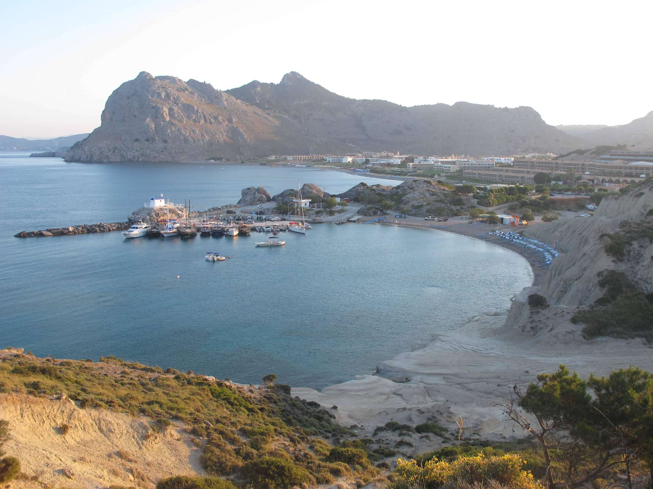 Vorne der Hafen, hinten Kolymbia Bay