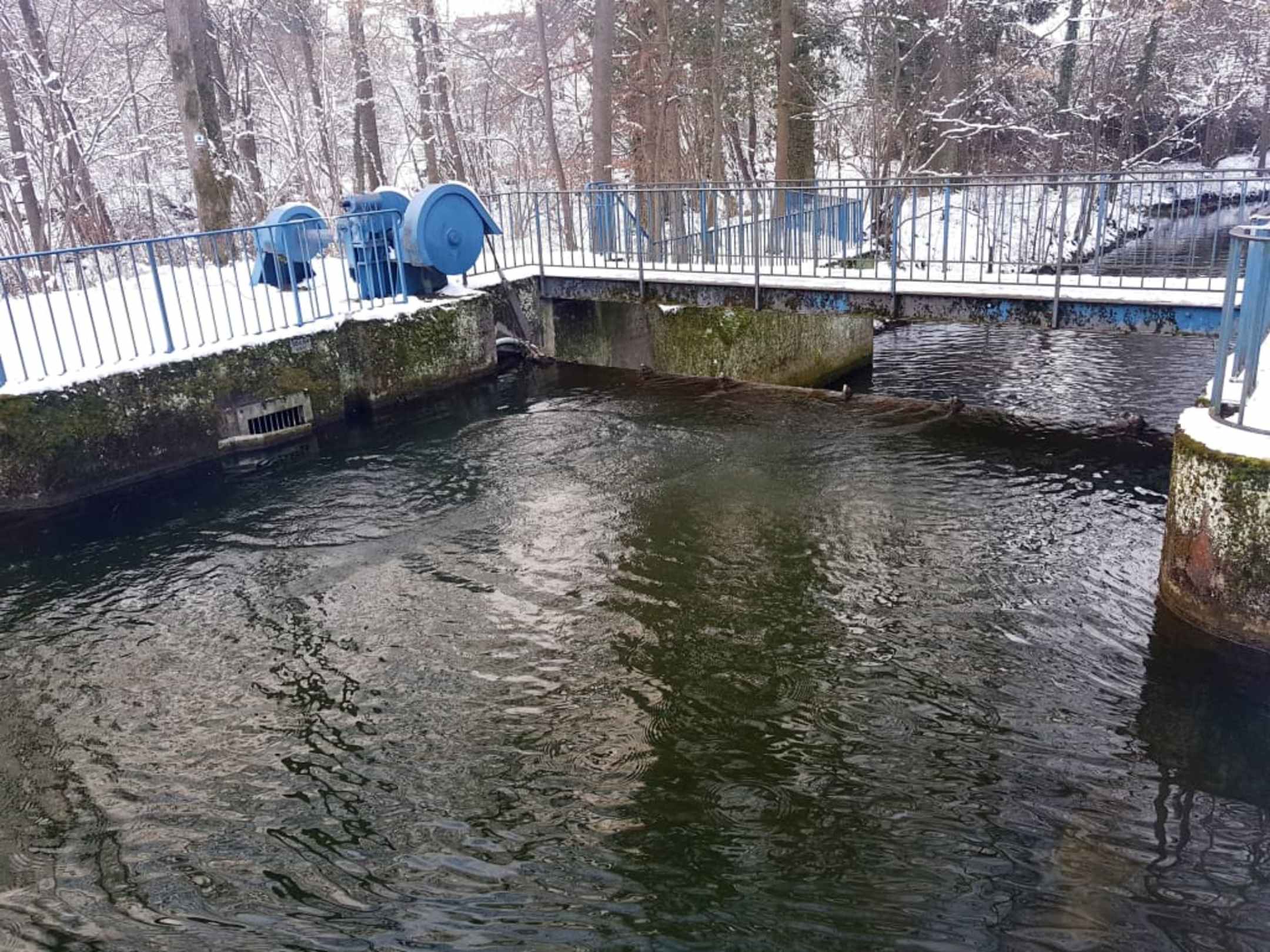 Überlauf mit Schleuße am See