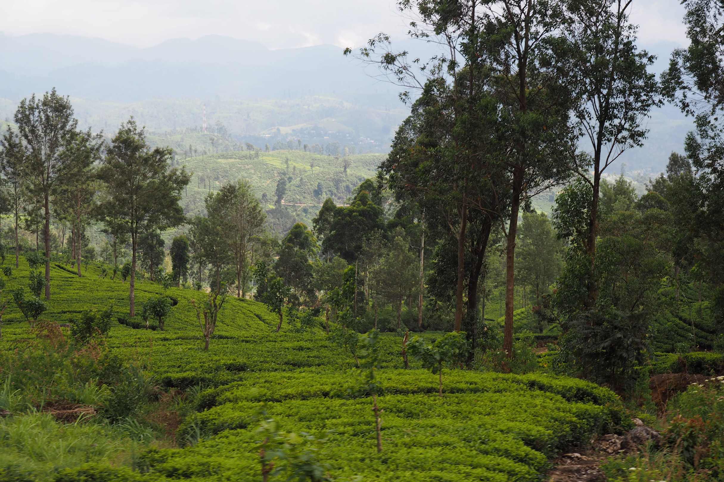 Ein Blick auf die Teeplantagen im Hochland von Sri Lanka