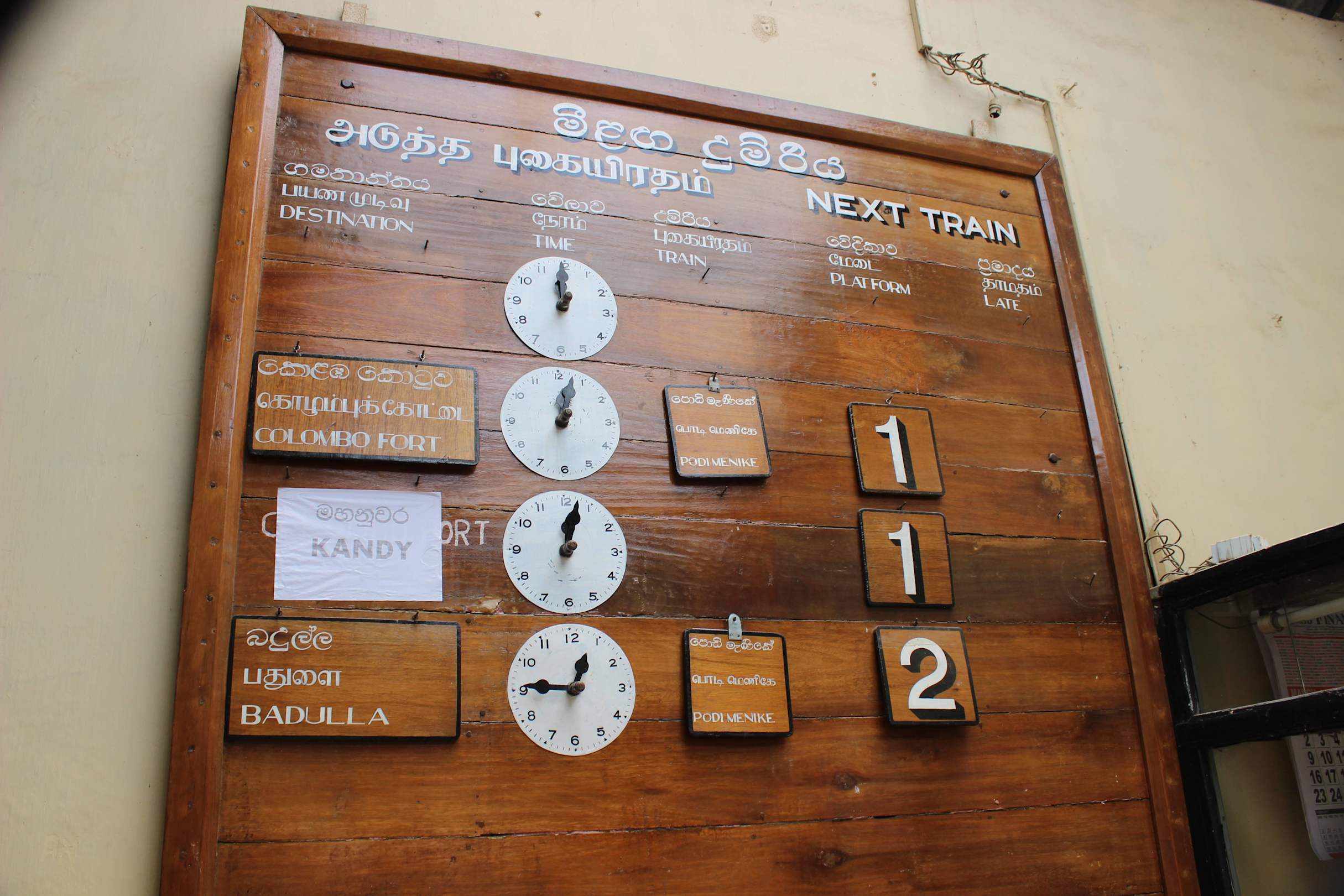 Tafel der Abfahrtszeiten