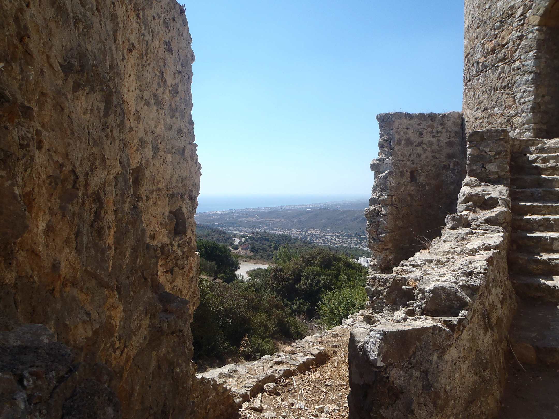 Blick durch die Ruinen über Asklipio