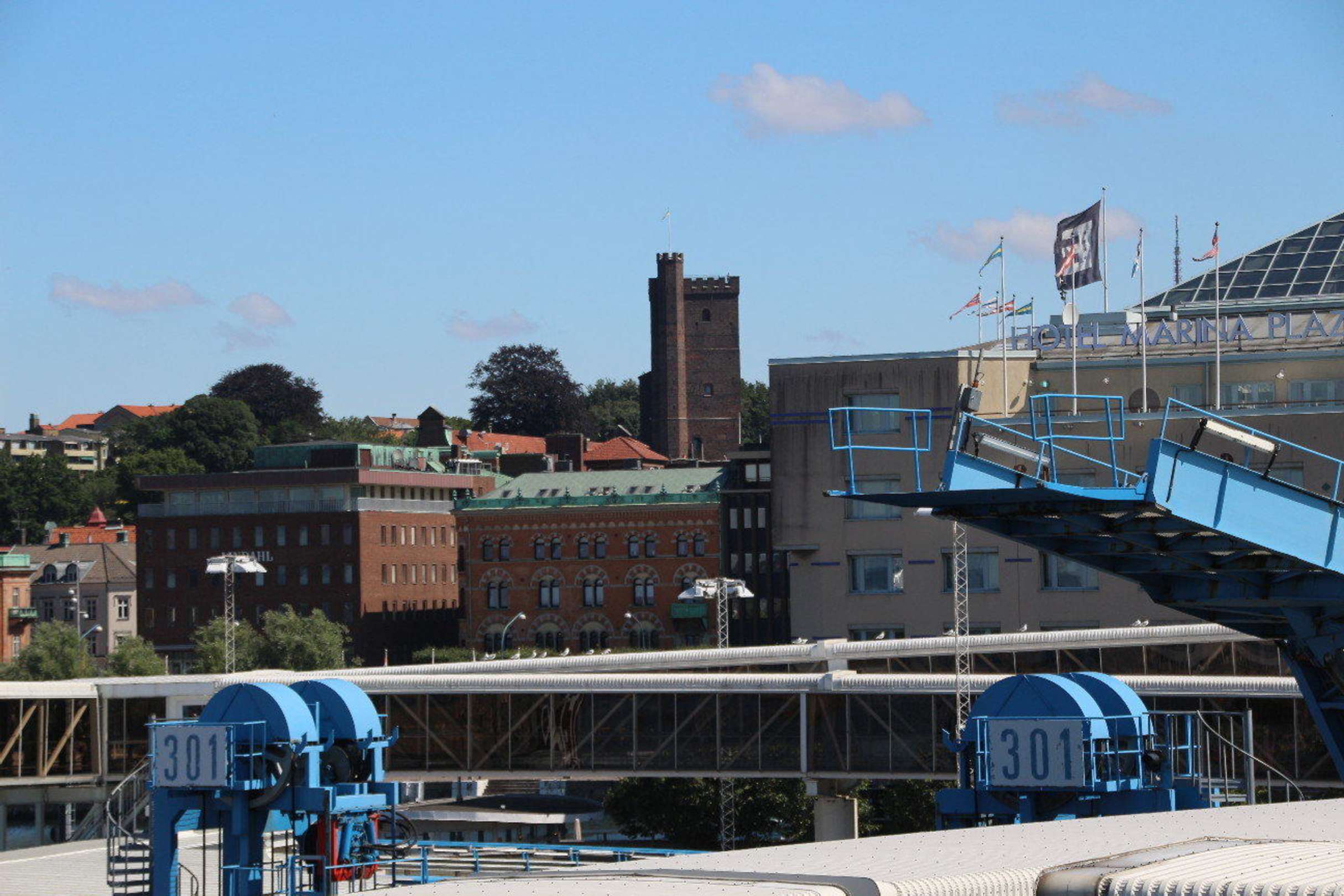 Blick auf den Kärnan vom Fährhafen