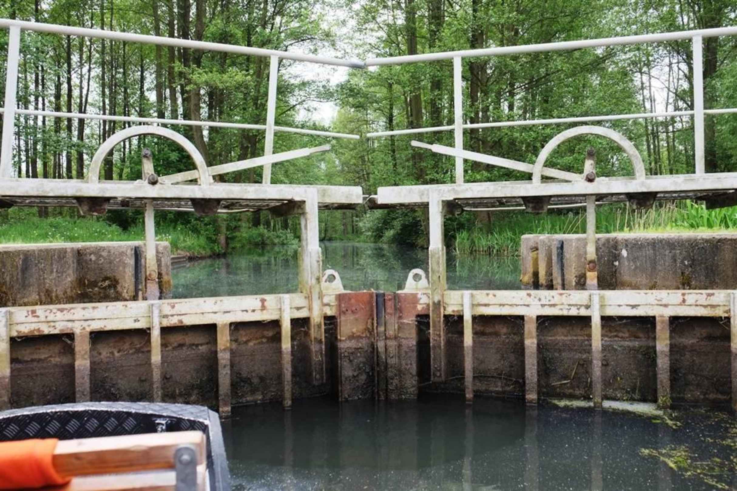 Mit dem Kahn in die Schleuse.
