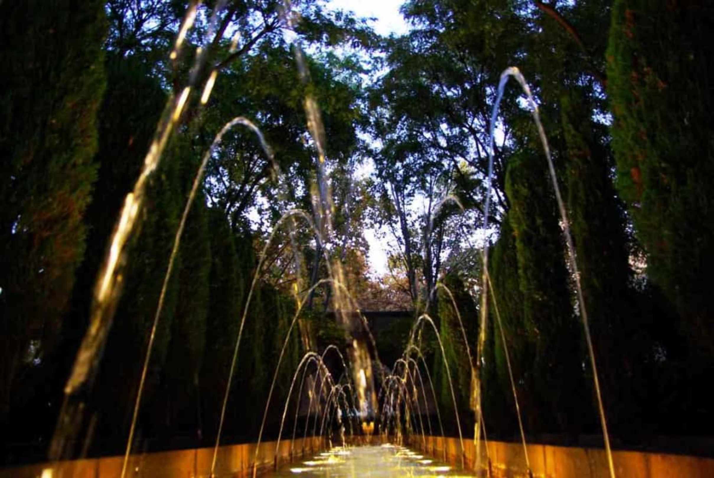 Am Abend vor der Brunnenanlage