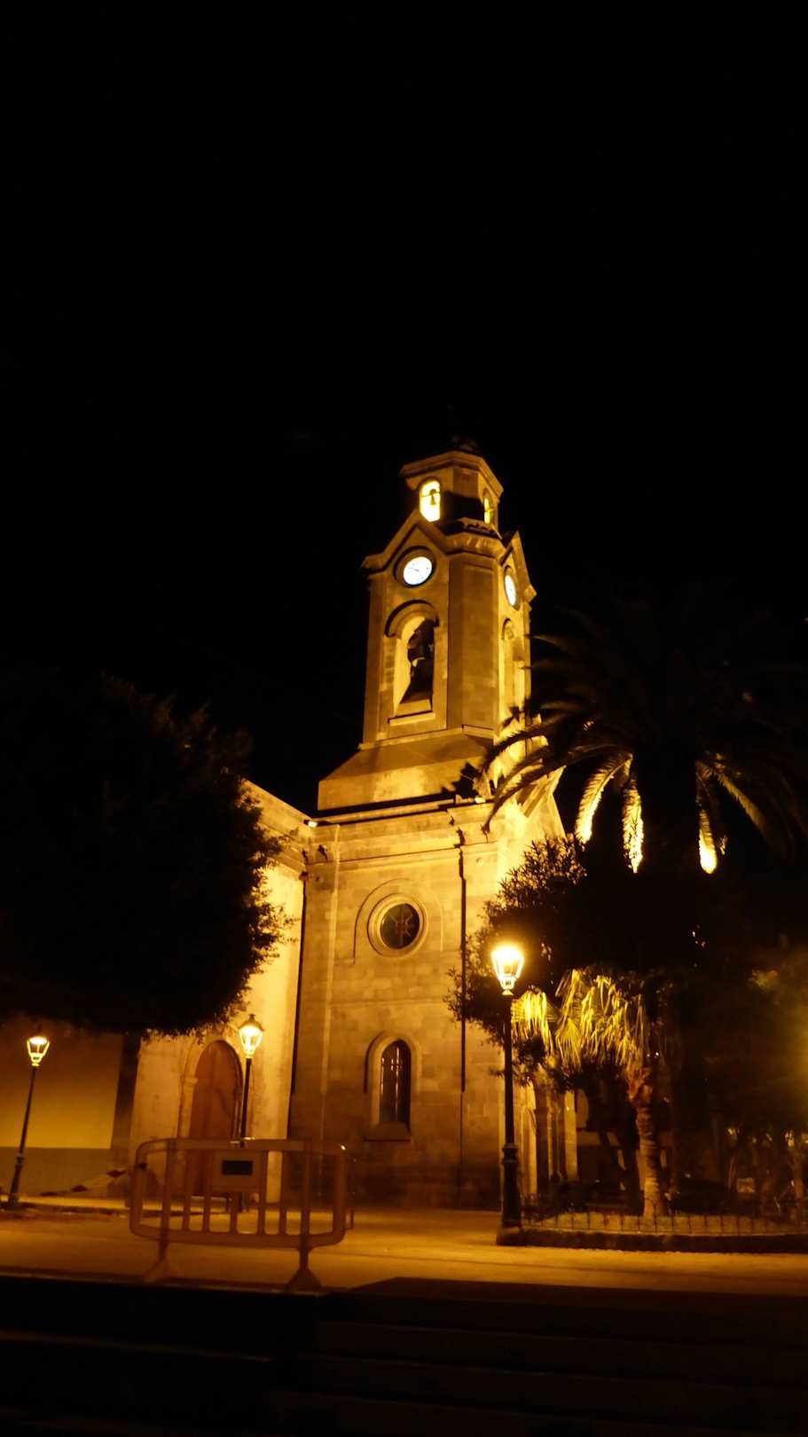 Die nächtliche Plaza de la Iglesia und Kirche
