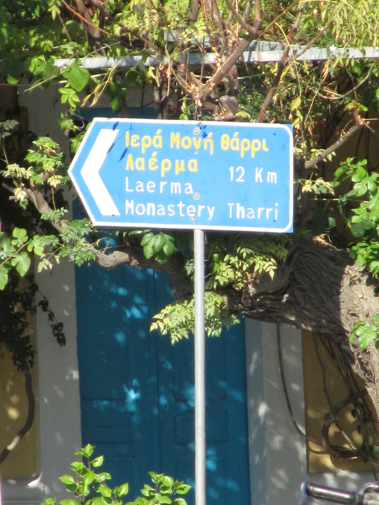 Wegweiser am Marktplatz in Lardos