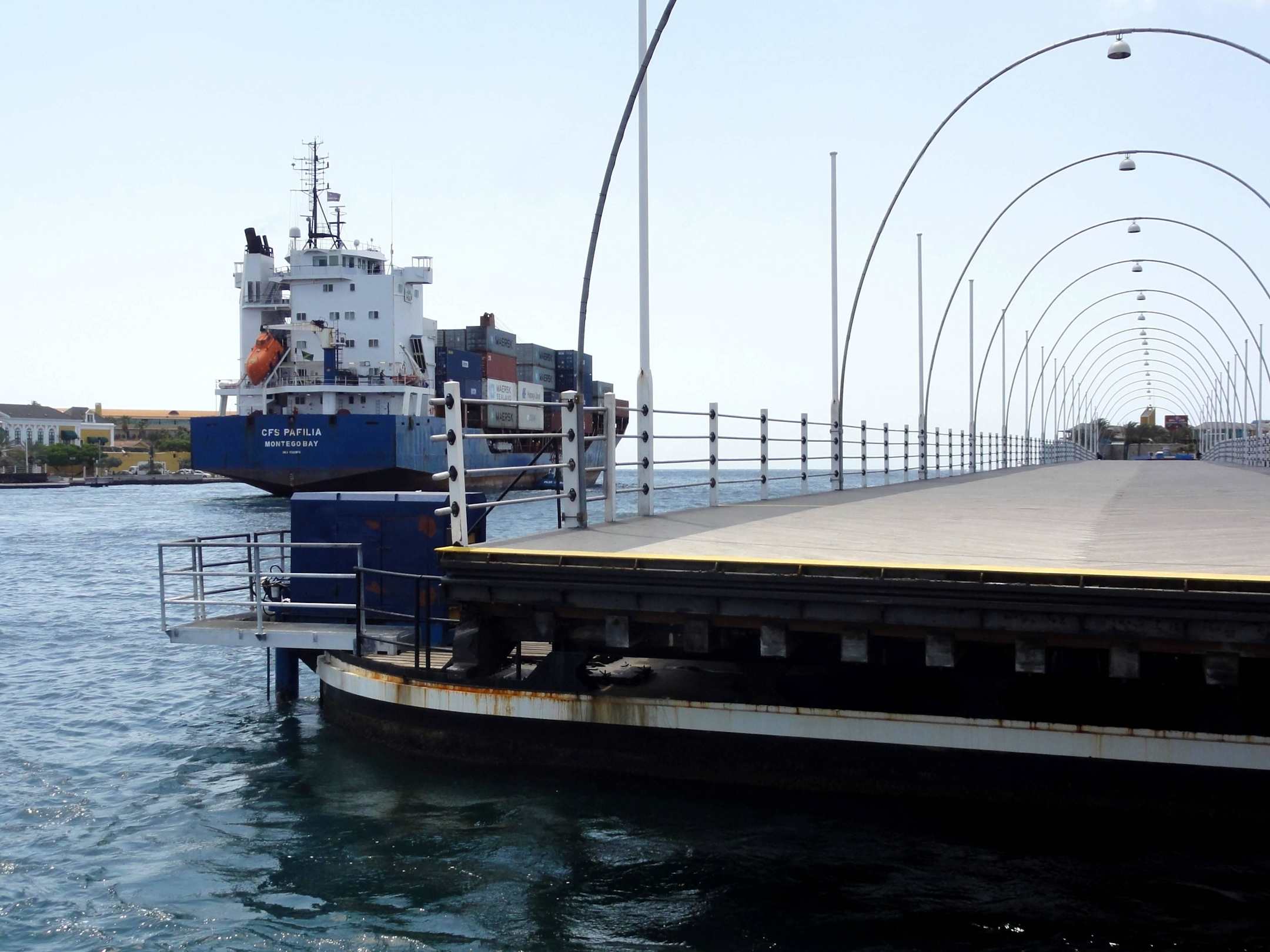 Passage eines Frachters bei geöffneter Brücke