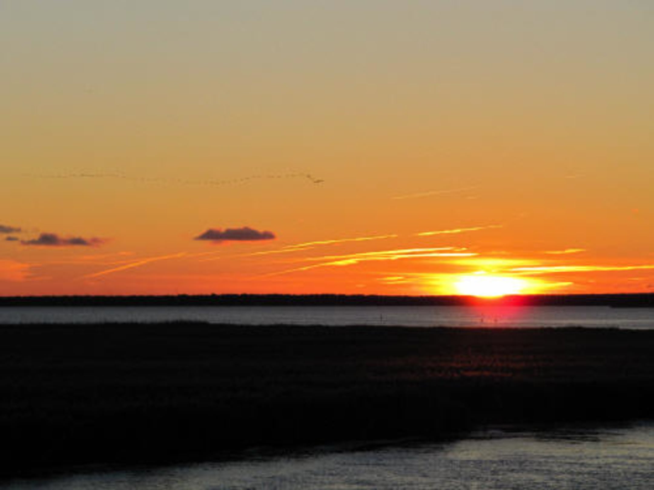 Kraniche fliegen in den Sonnenuntergang