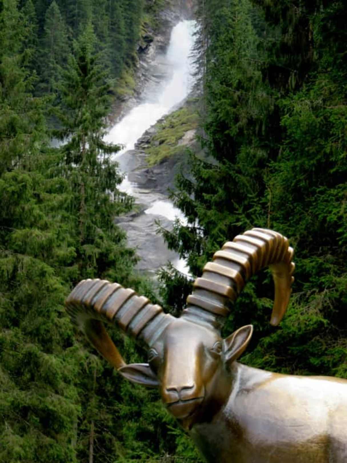Ein Steinbock vor dem Wasserfall