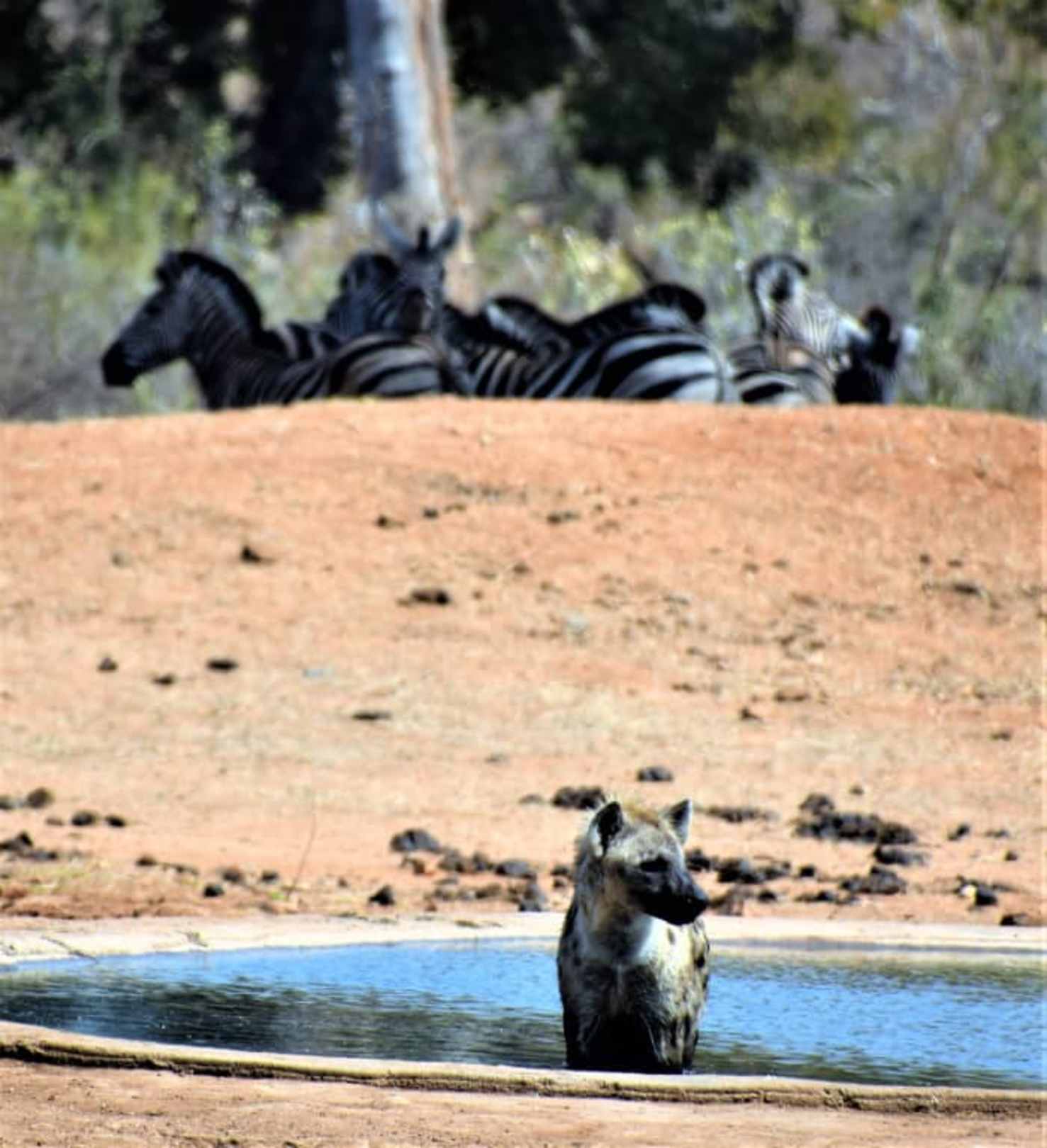 Tüpfelhyäne und Steppenzebras