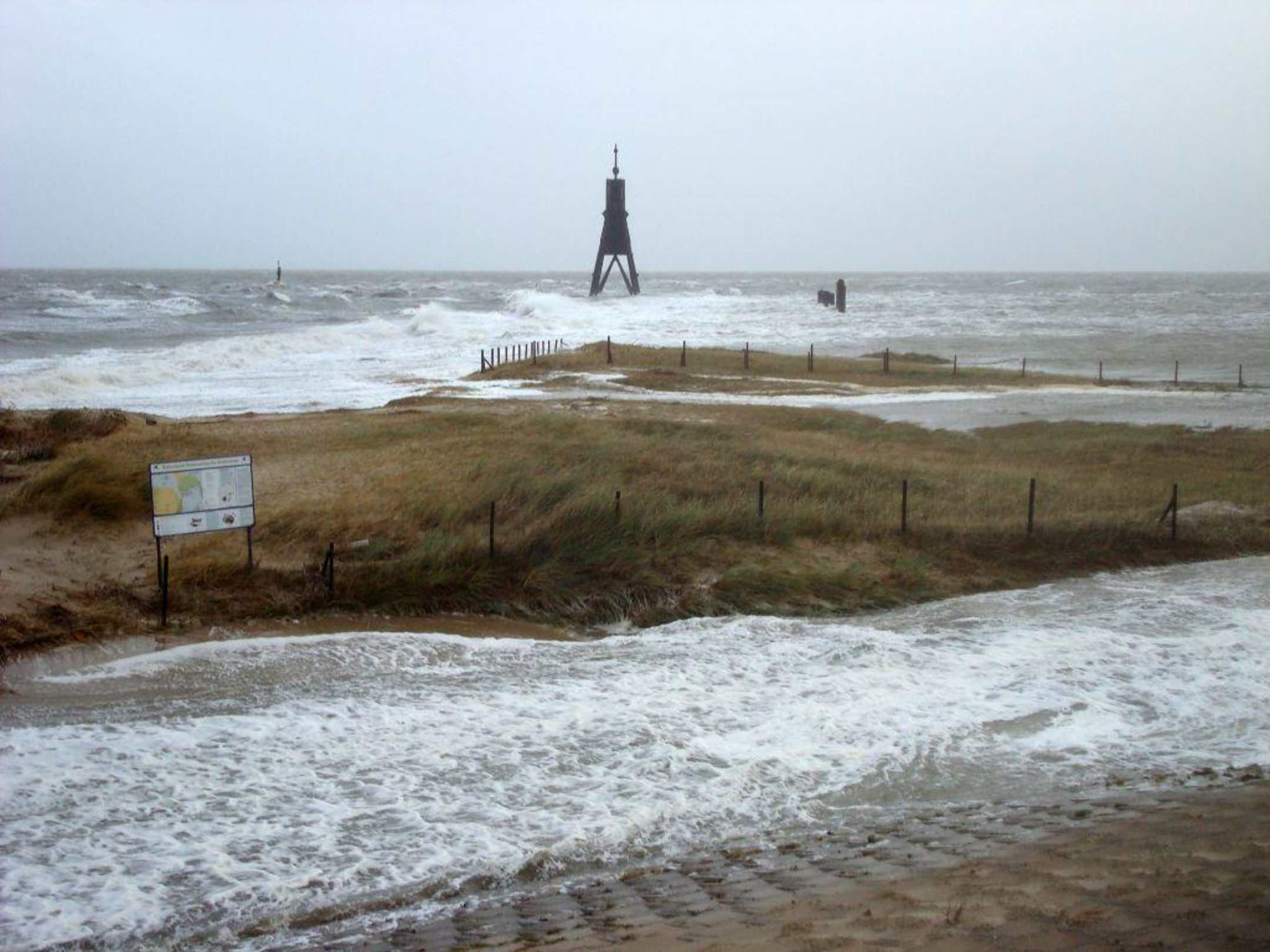 Die Kugelbake bei Sturmflut