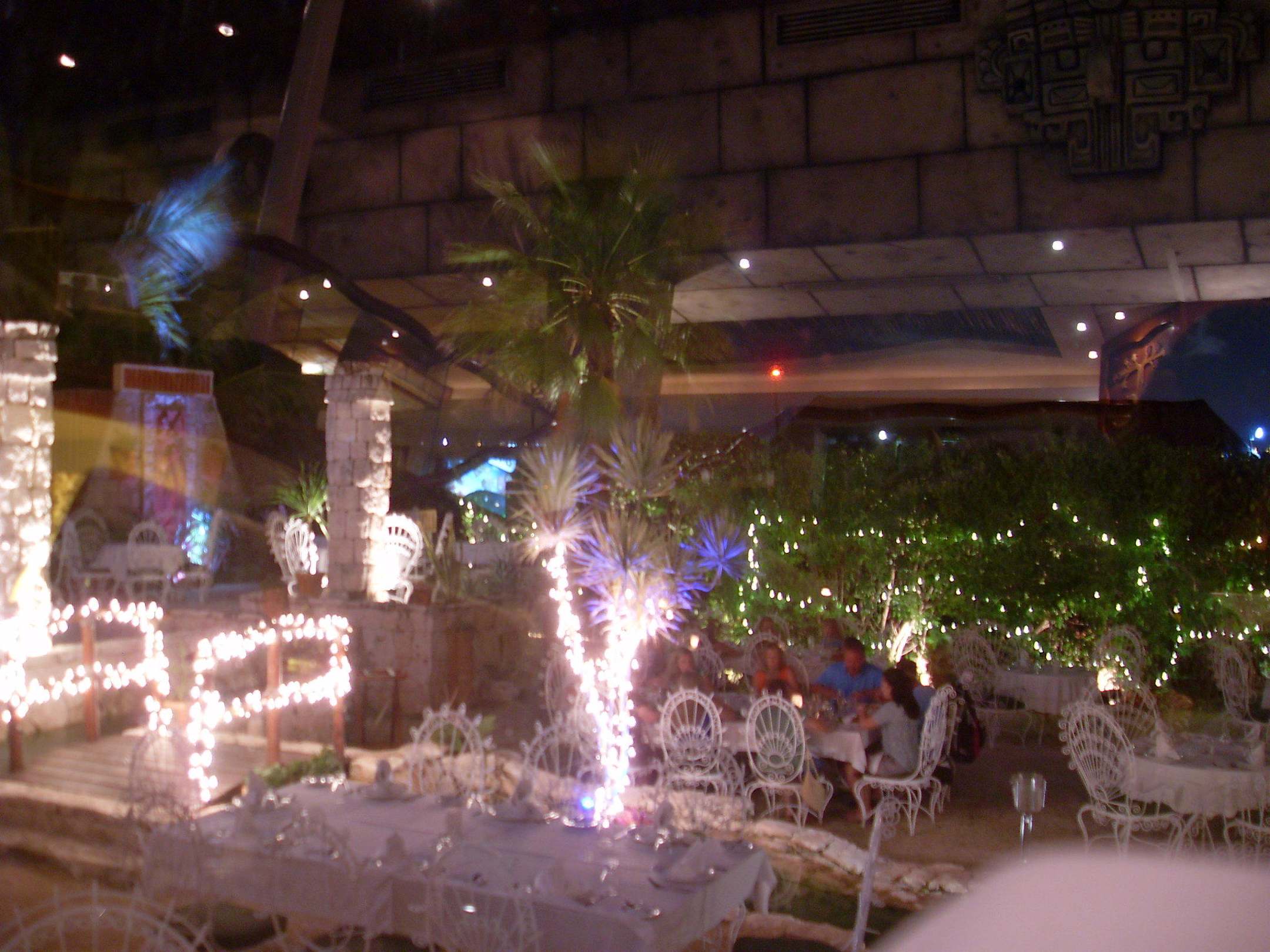 Durch Glasfront auf Terrasse fotografiert
