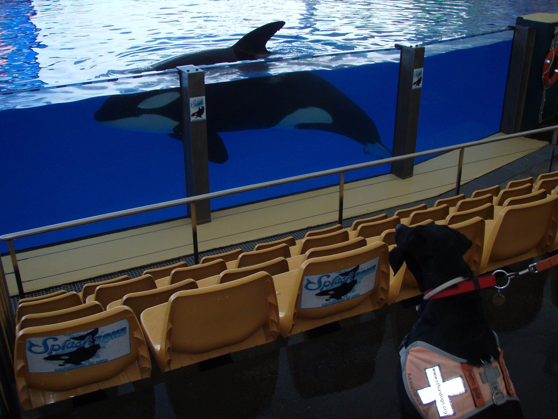 Behinderten-Begleithund bestaunt Riesen-Orca