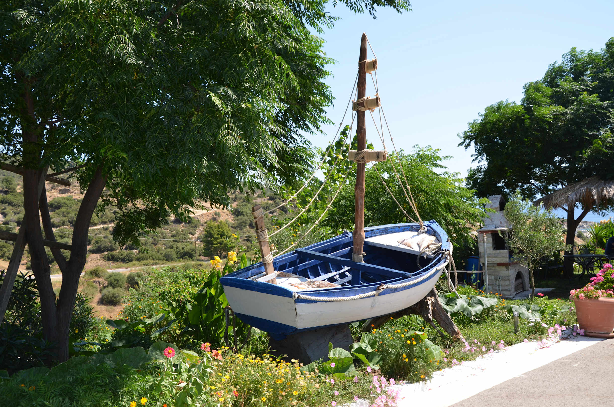 Gartenanlage mit Boot