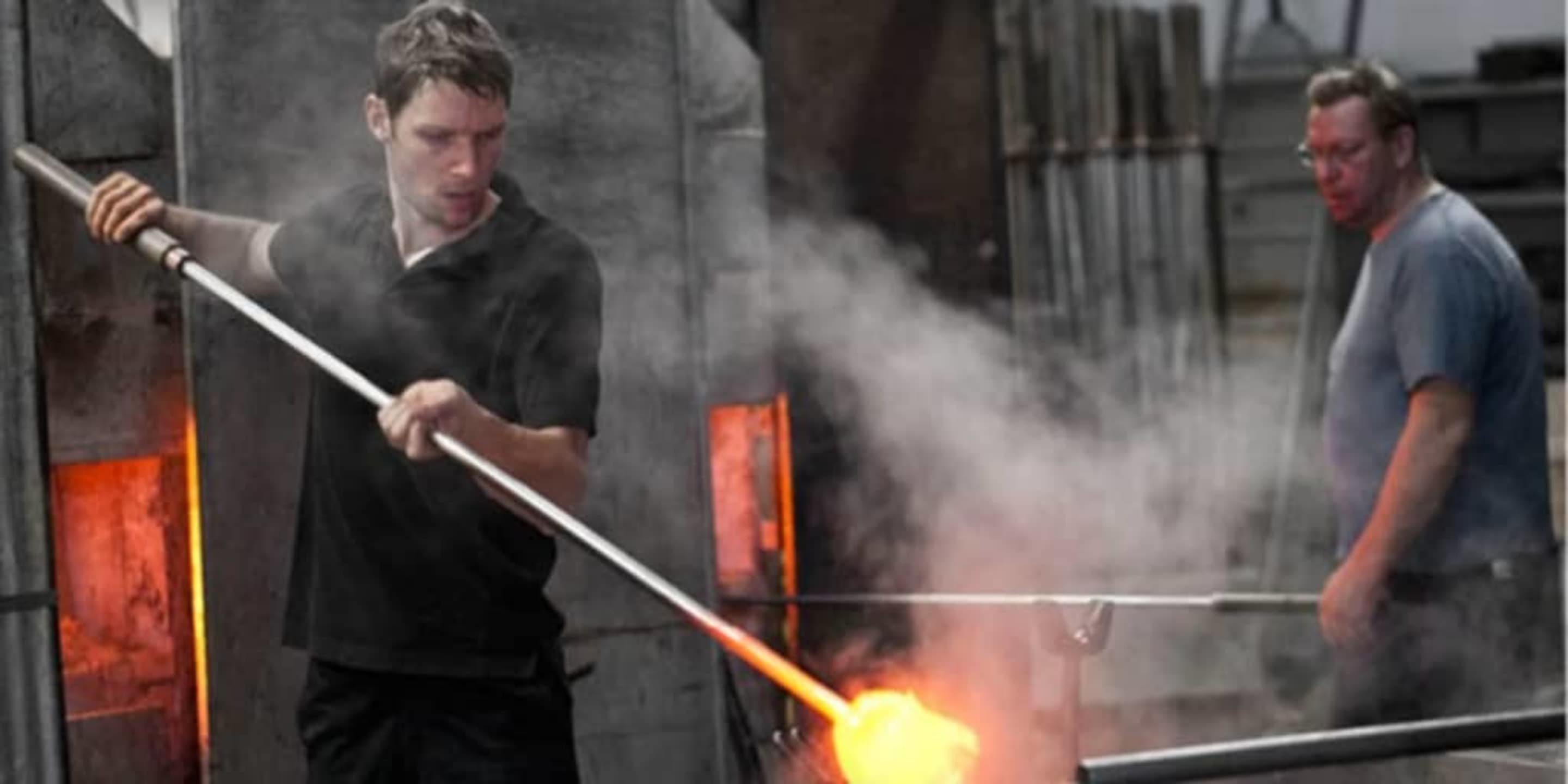 Processing the hot glass