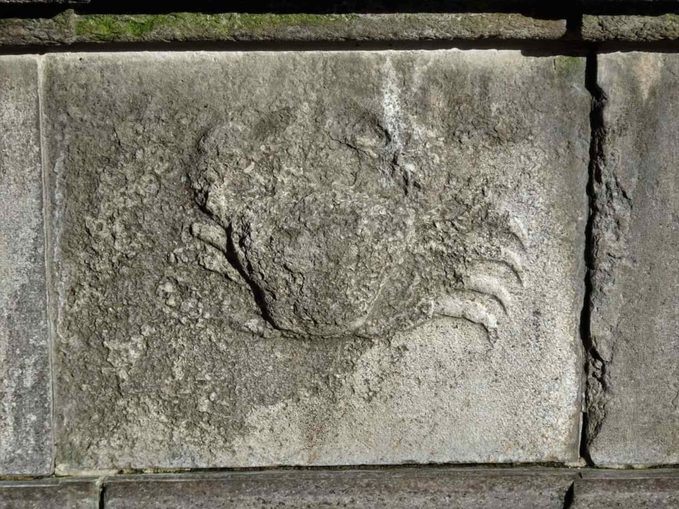 Verwittertes Relief am Brunnenrand