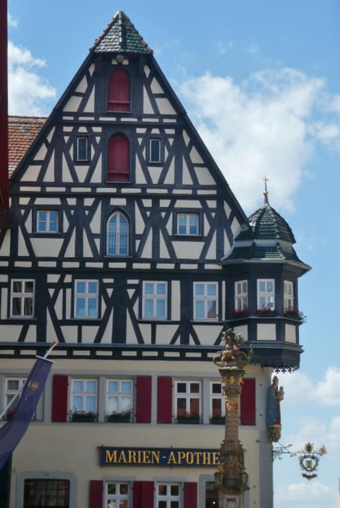 Blick zur Marien-Apotheke, davor der Georgsbrunnen