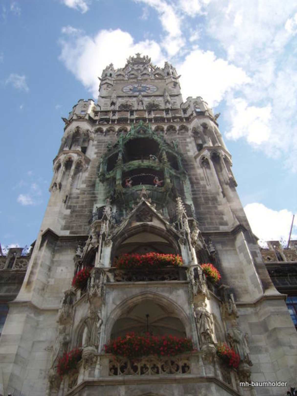 Der Hauptturm des Rathauses mit Glockenspiel