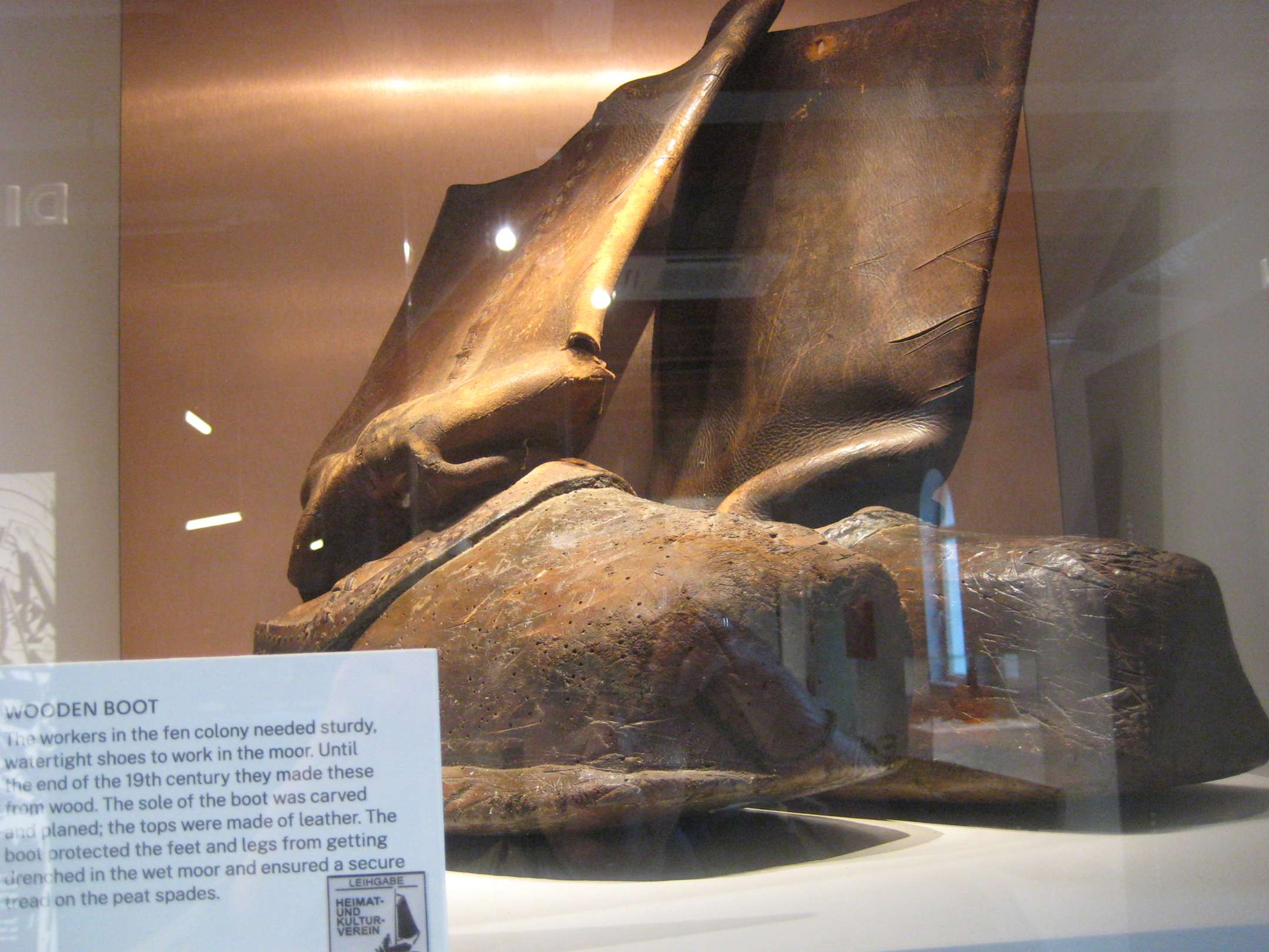 Schuhe der Torfarbeiter: unten Holz, oben Leder