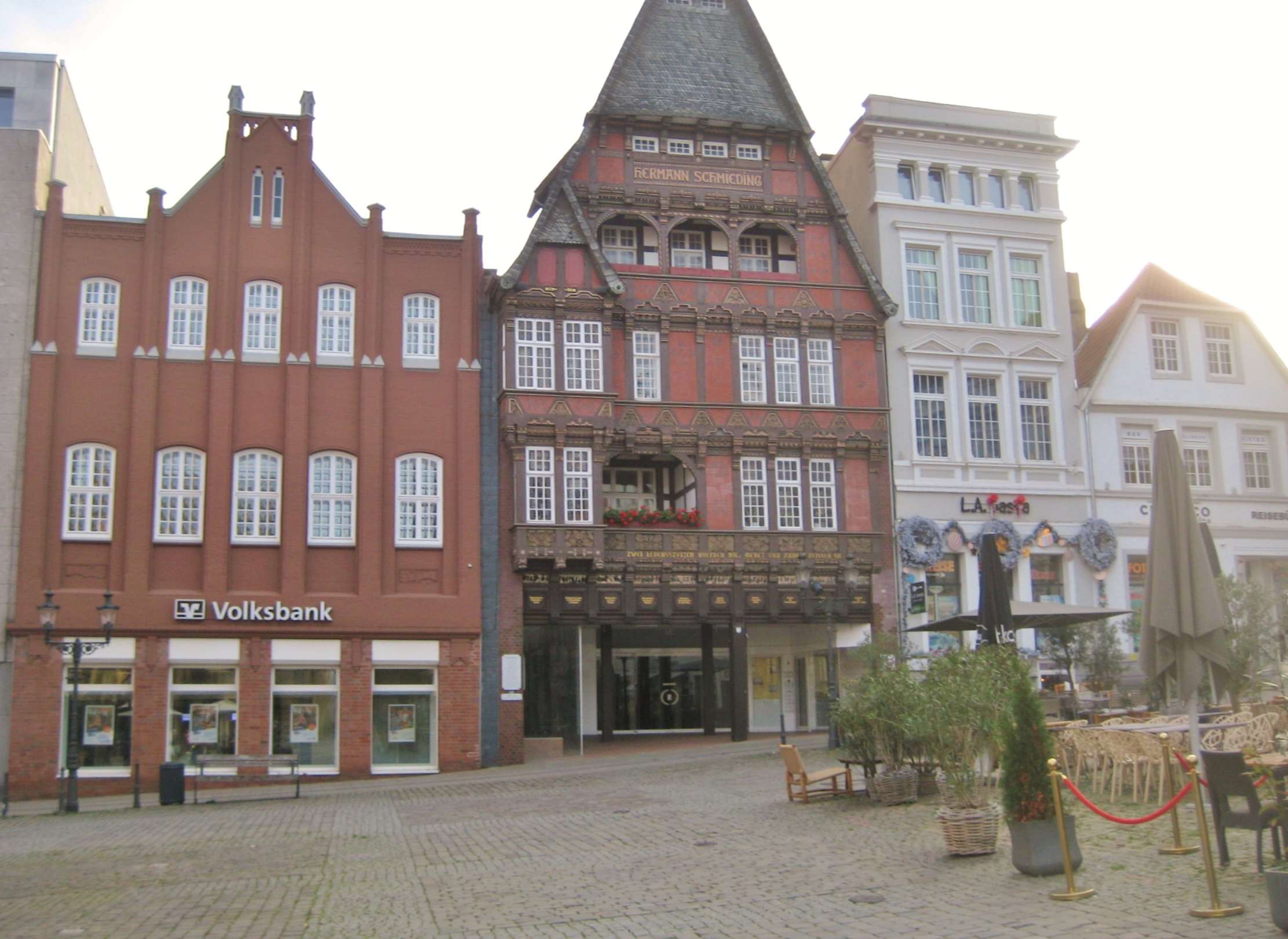 Schöne Häuser am Markt. Mittig das Schmieding Haus