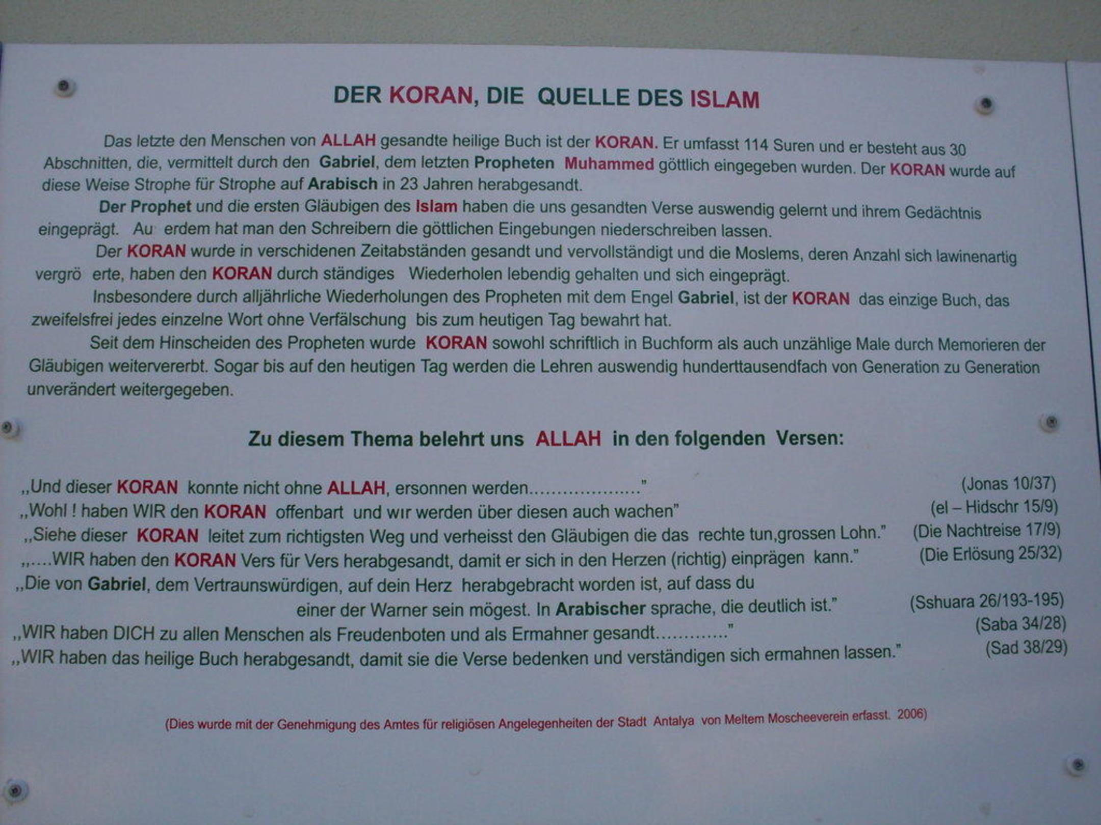 Tafel an der Moschee
