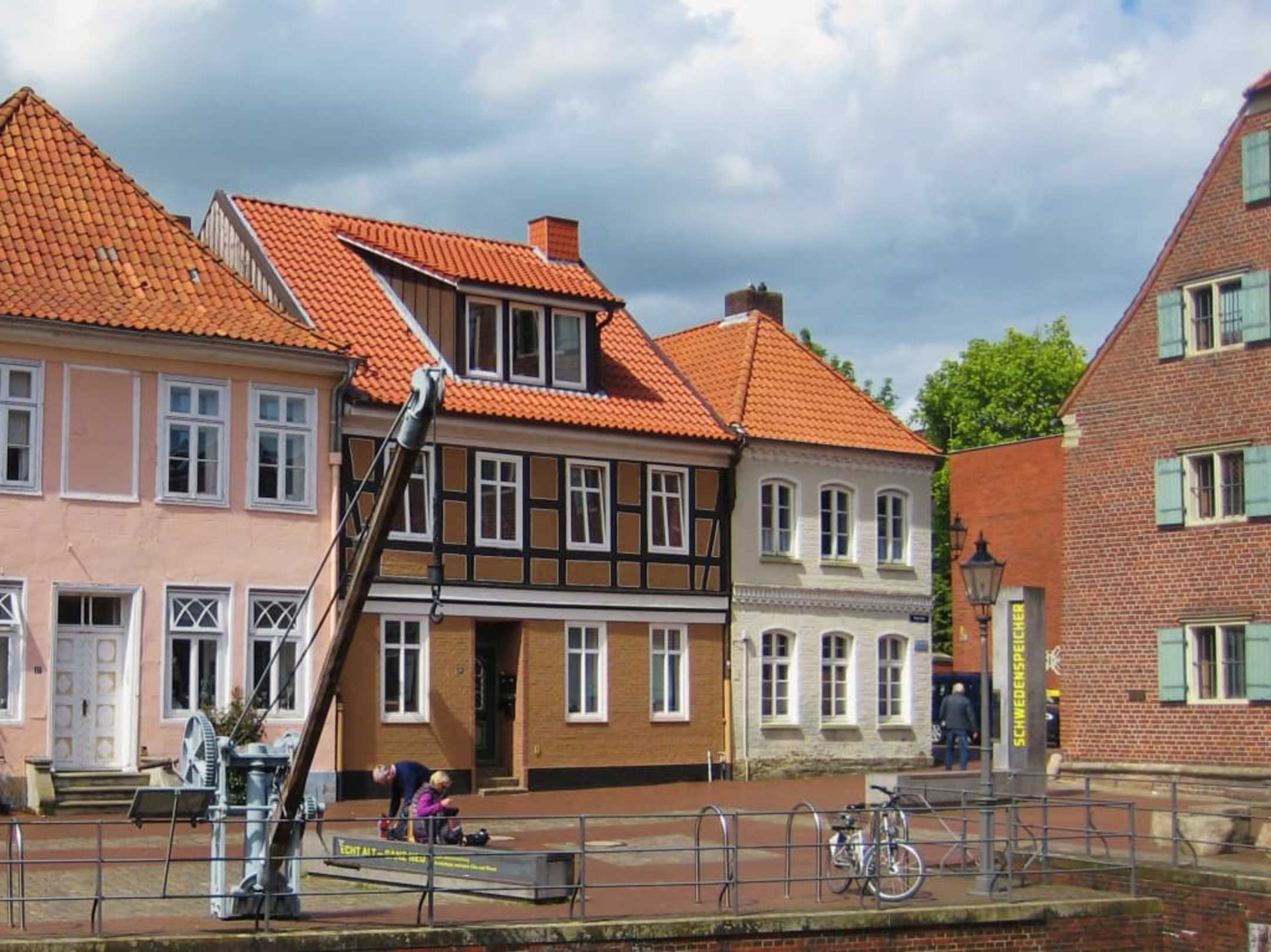Schwedenspeicher: rechts Museum, links ein Kran