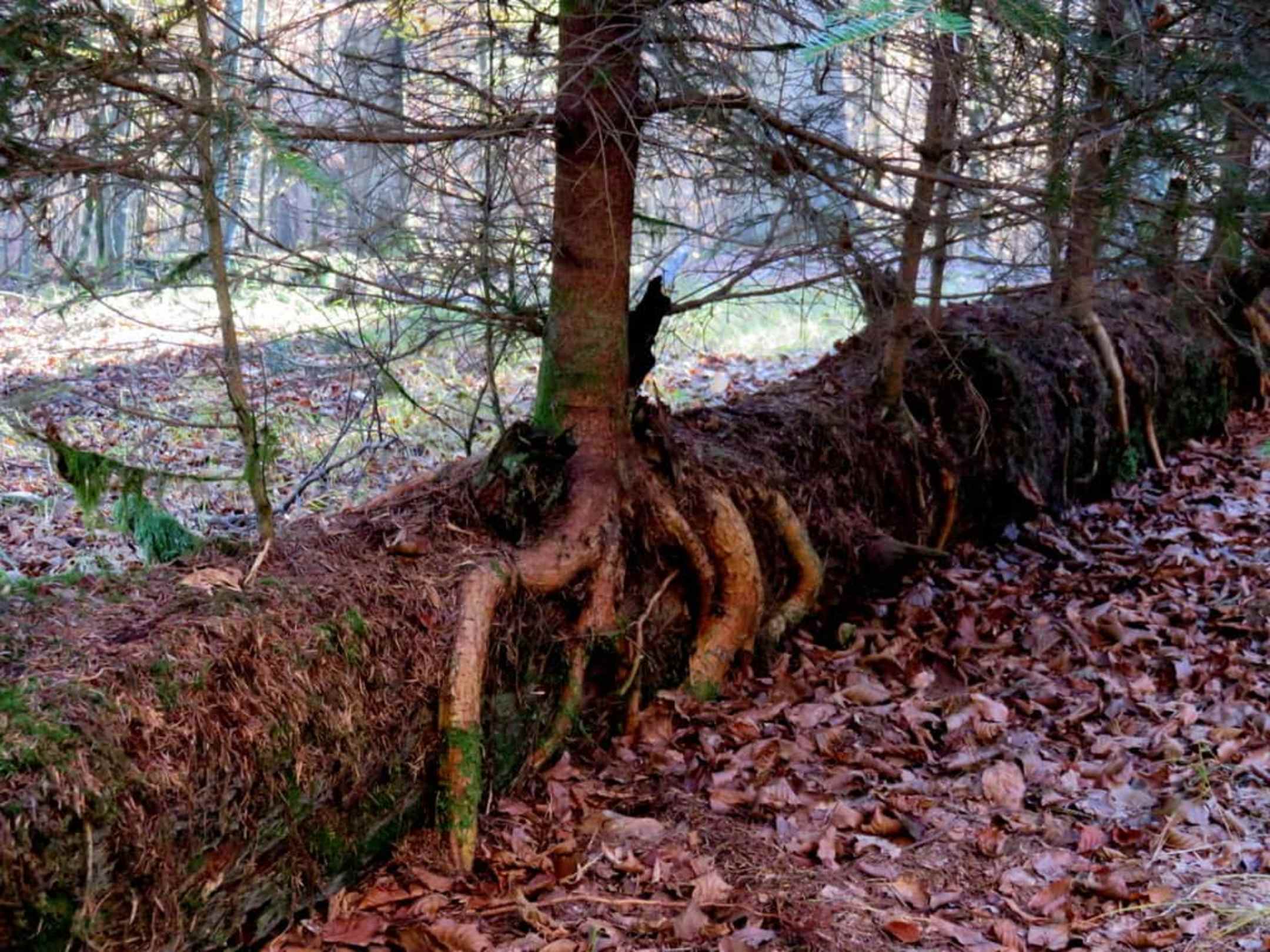 Neue Bäume wachsen auf dem Totholz