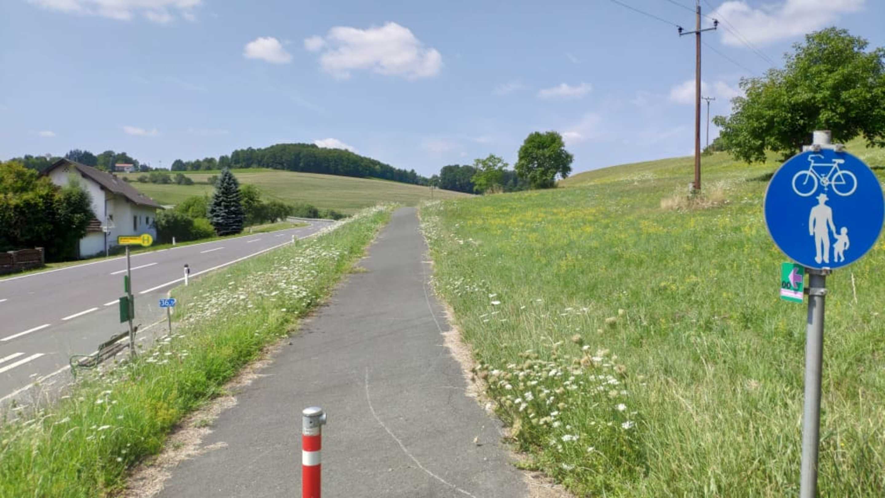Am Fußgeher und Radweg